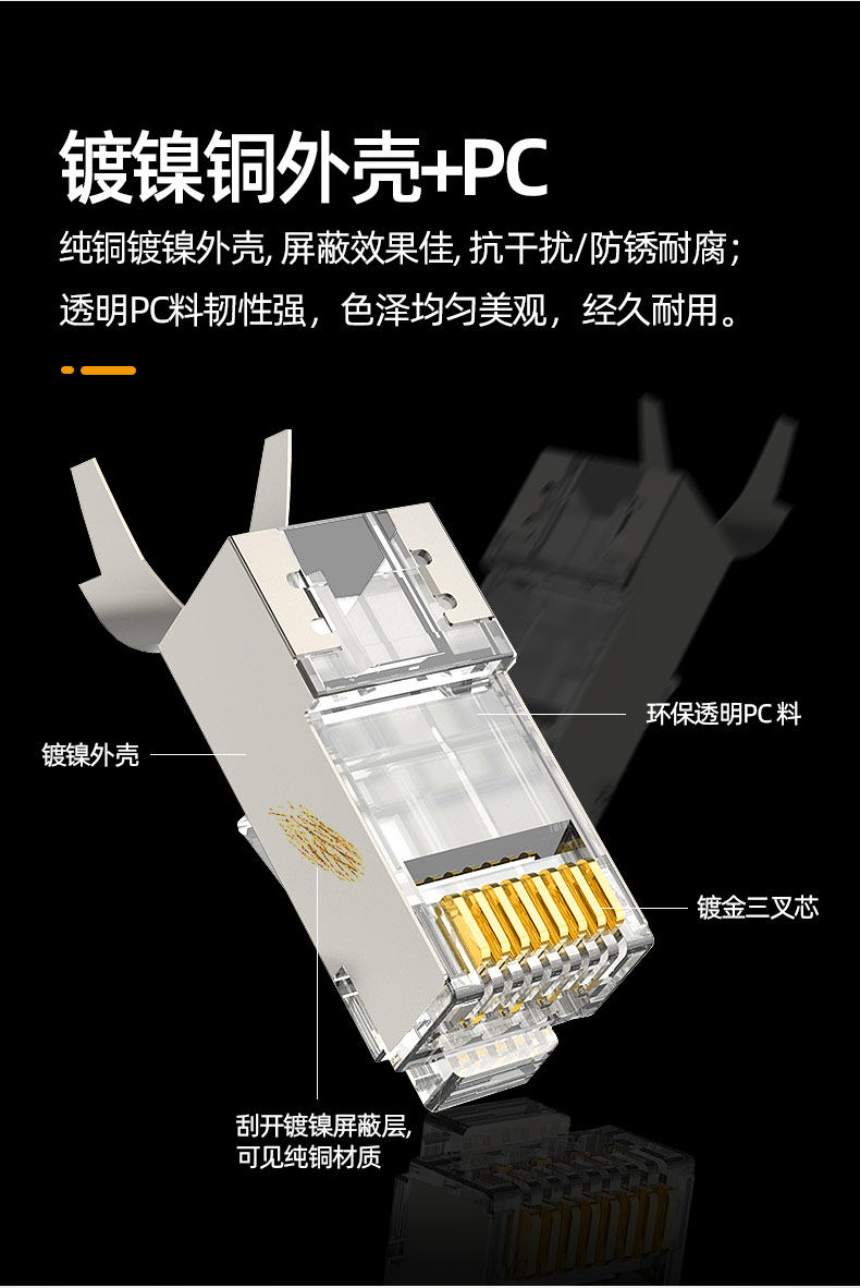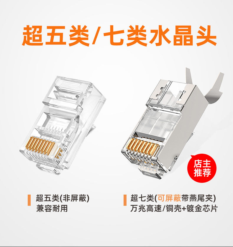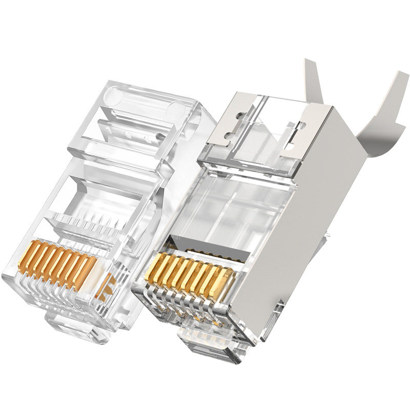 Чистый кабельный кристаллический головка Cat7 Более 5 категорий 5667 щиты RJ45 Gigabit 8p8c Компьютерный сетевой кабель соединение стыковки кабеля