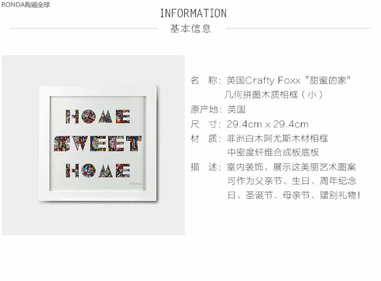 Британский импортный хитрый foxx милый дом, деревянная современная креативная фоторамка, декоративная подвесная картина 29,4 см