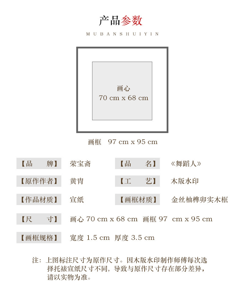 荣宝斋 Декоративная живопись Huang Yan Dancer в стиле китайского стиля простая гостиная крыльцо Фоновая стена висящая картина деревянная версия водяного знака водяного знака
