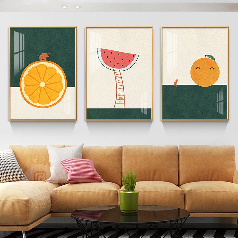 Северная гостиная декоративная живопись Современная минималистская маленькая свежая фруктовая тройная живопись, ресторан, висящий рисовать диван фоновая стена роспись