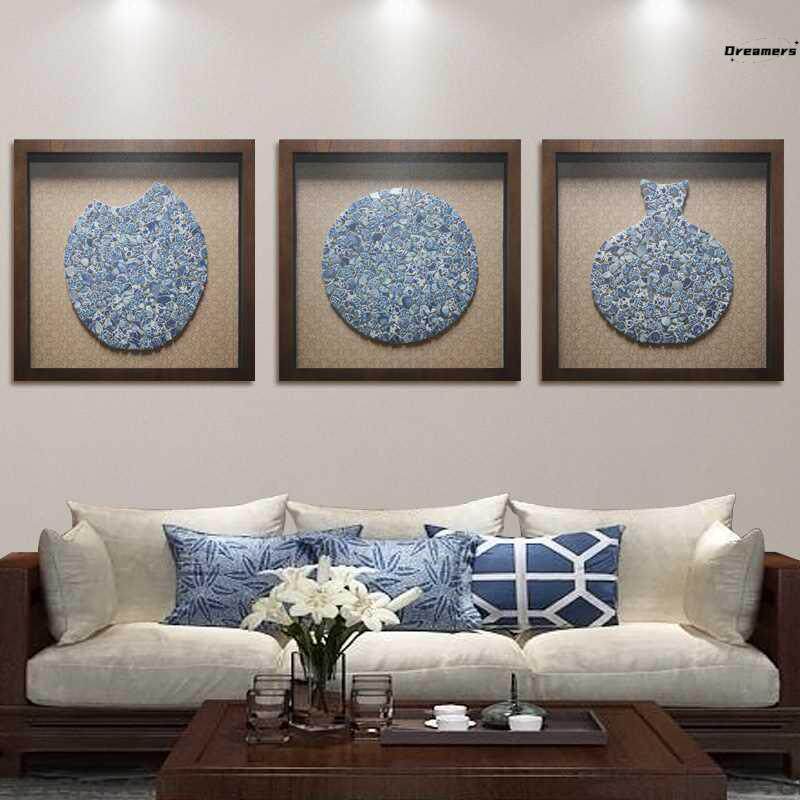 Сине-белый трехмерный декор для гостиной ручной работы, домашний декор, китайский стиль
