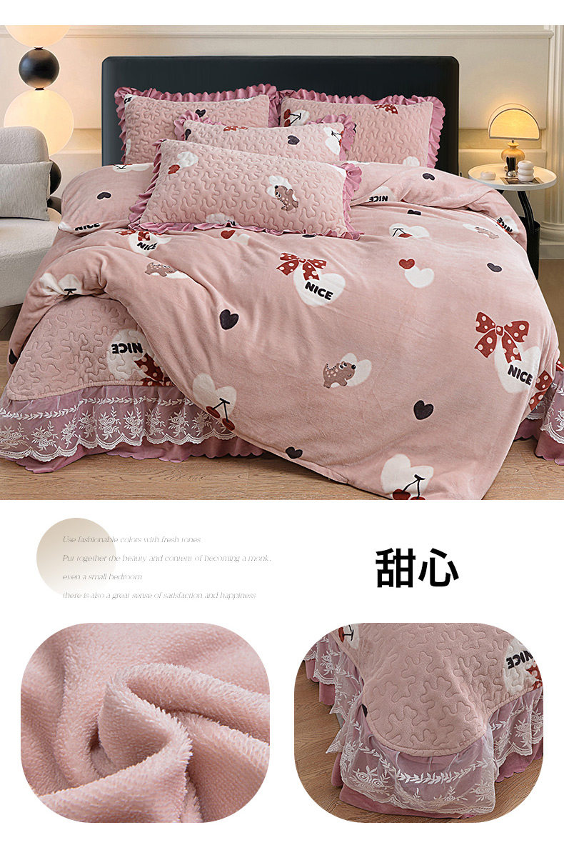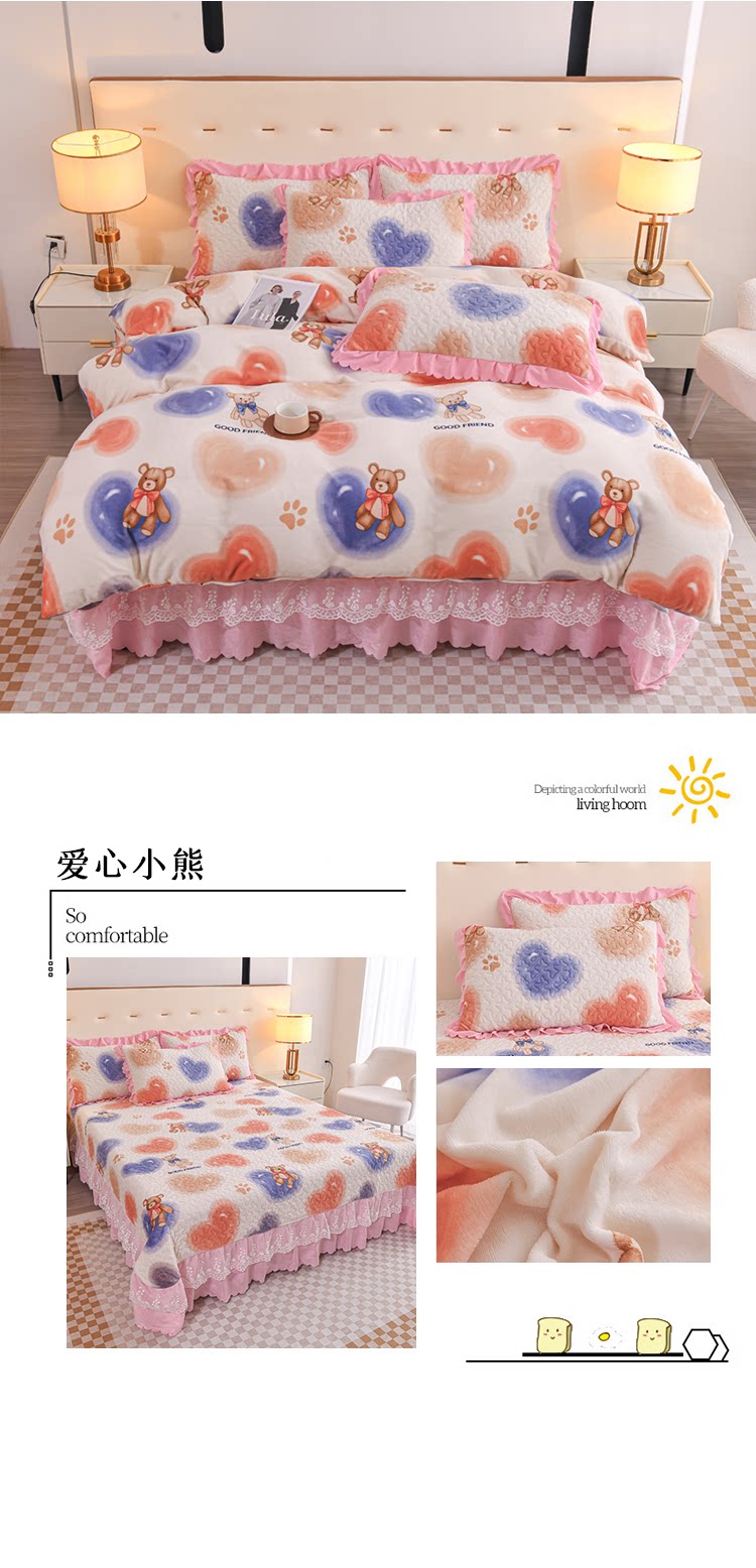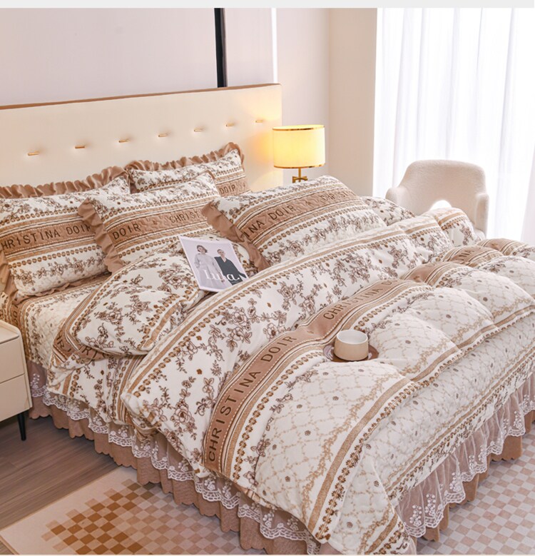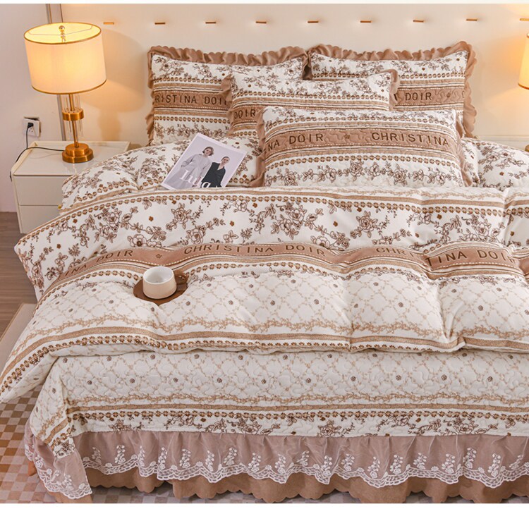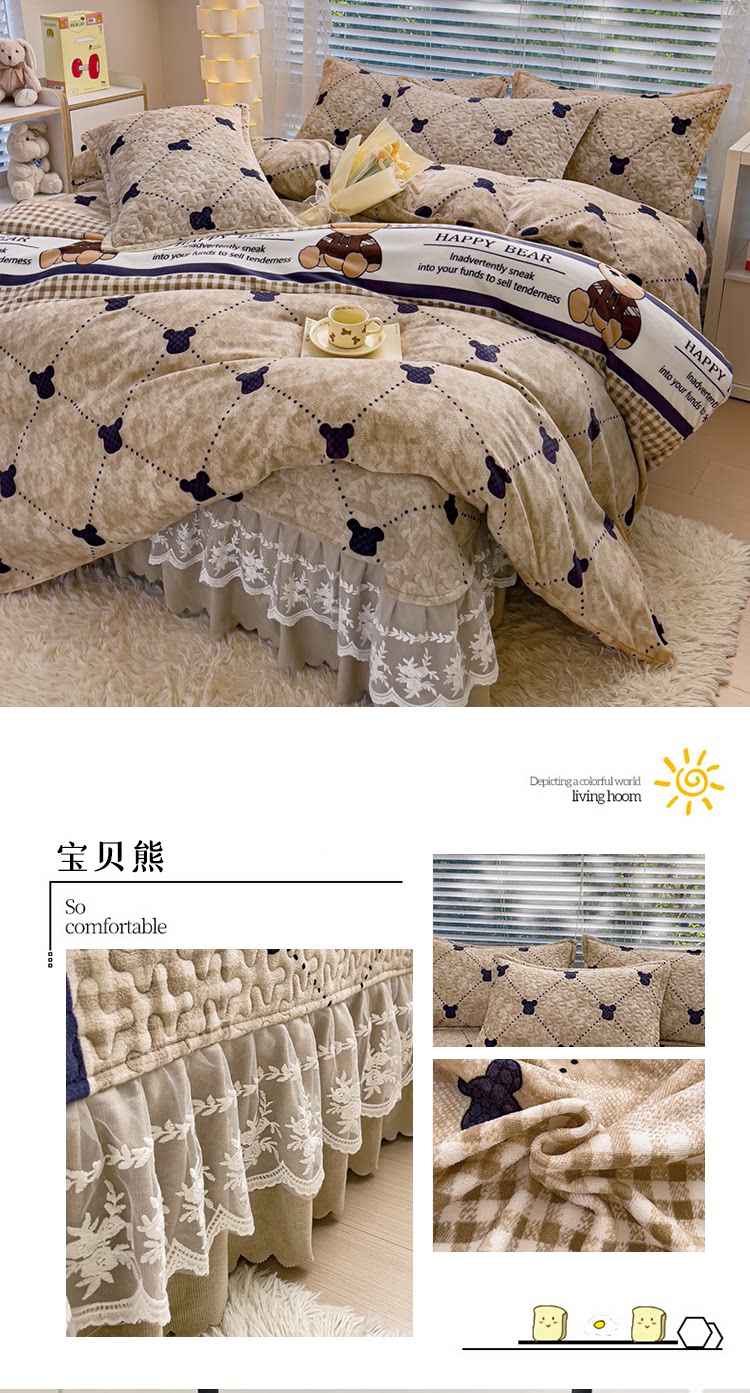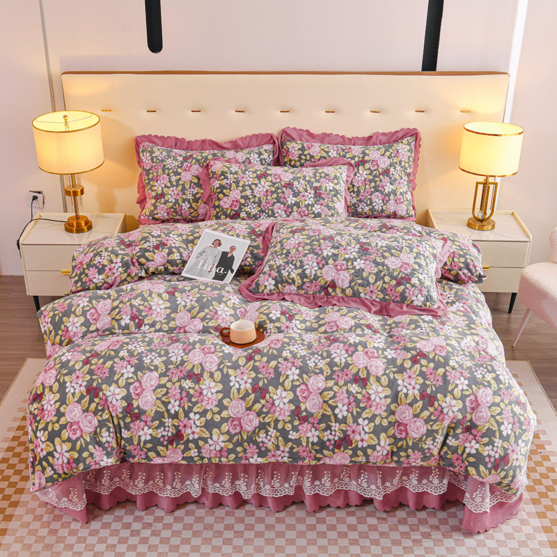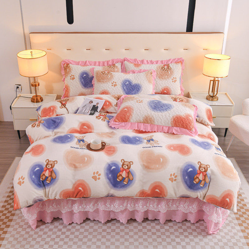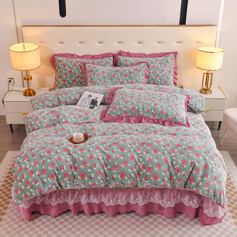Бархатный утепленный коралловый комплект, бархатная стеганая зимняя юбка, простыня для принцессы, 4 предмета, 3 предмета