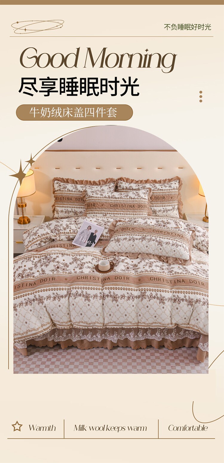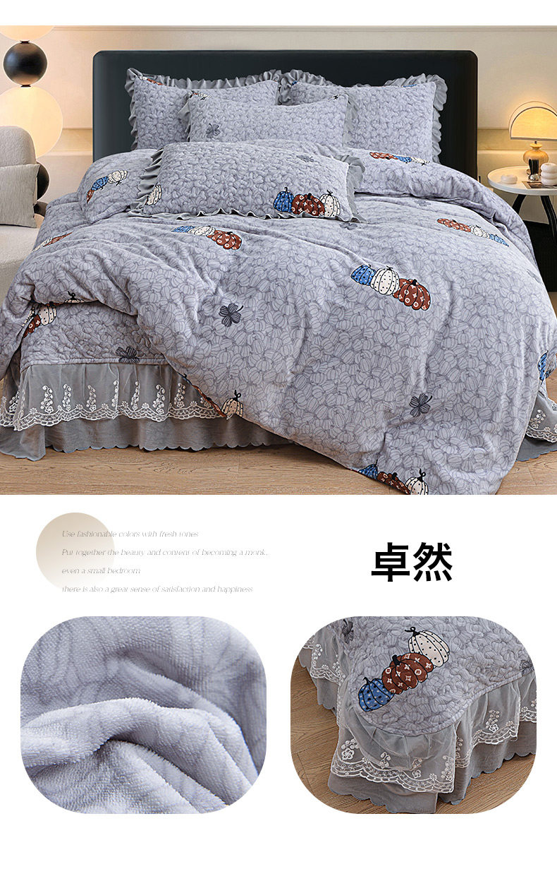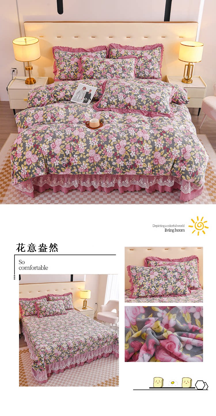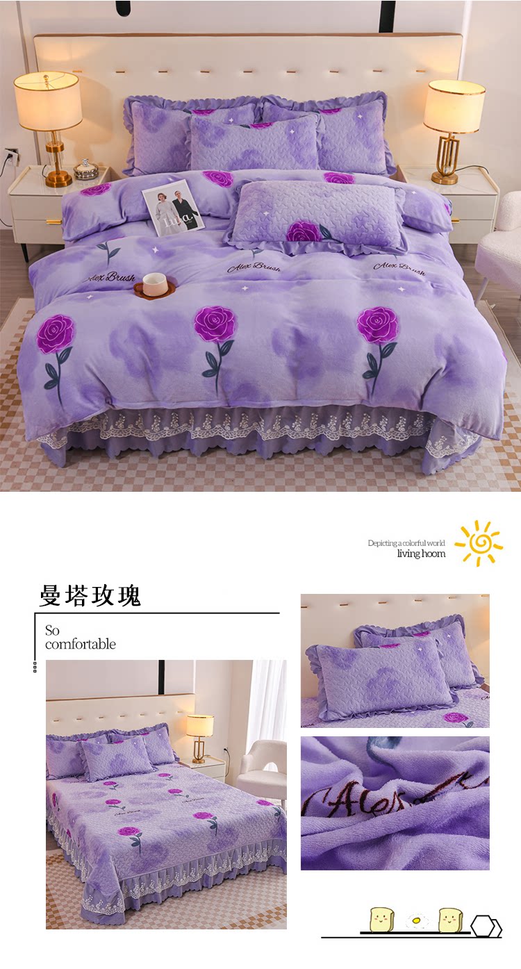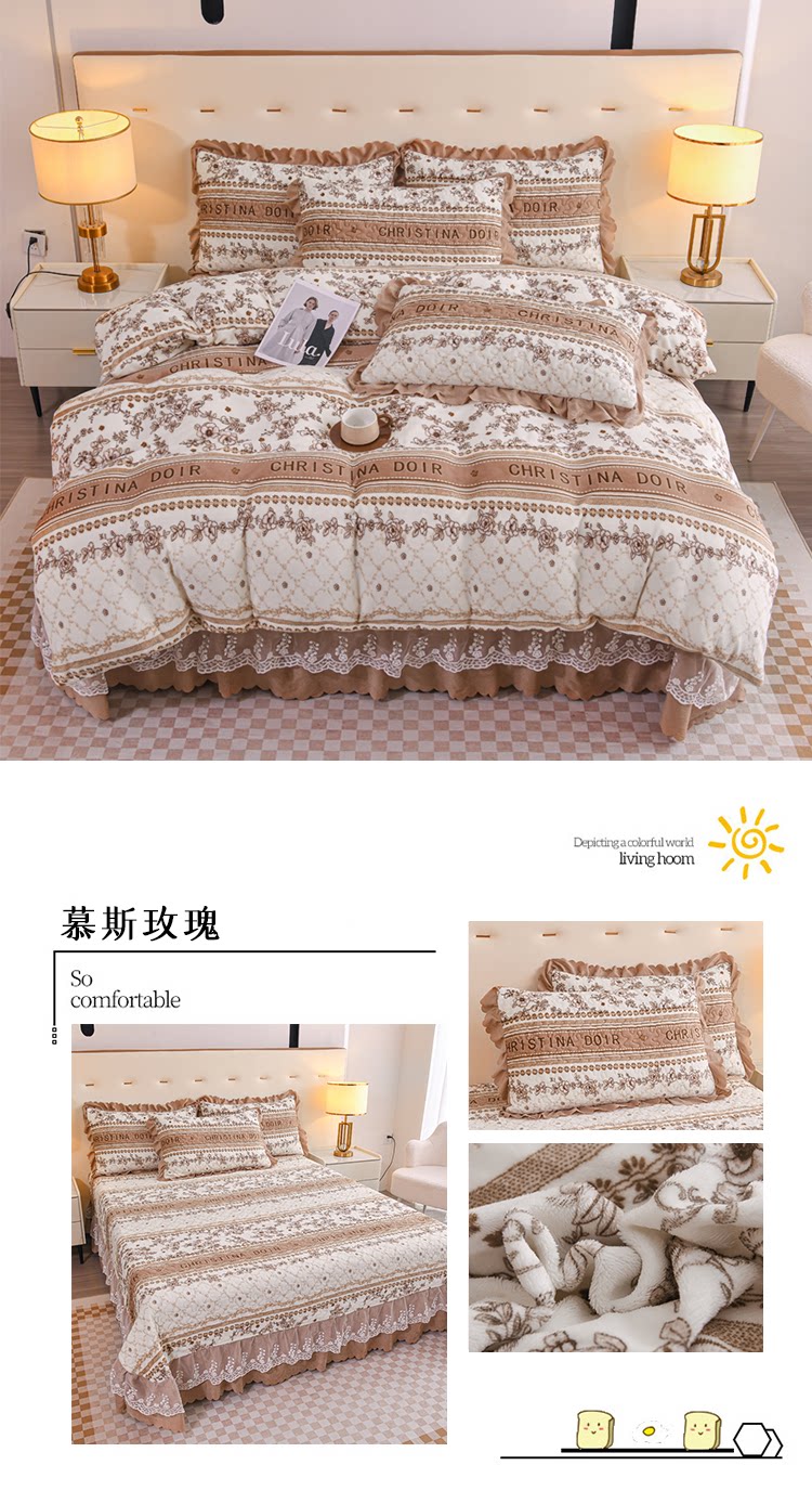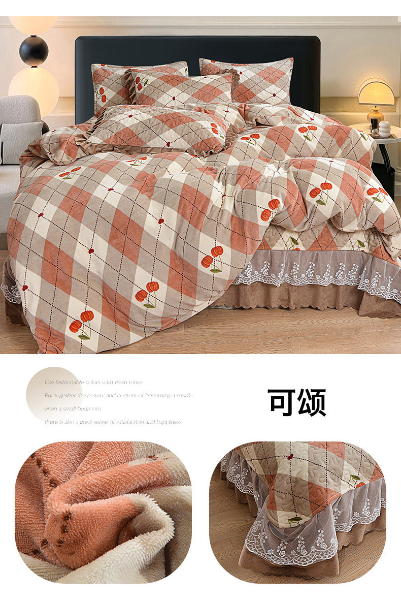 Бархатный утепленный коралловый комплект, бархатная стеганая зимняя юбка, простыня для принцессы, 4 предмета, 3 предмета