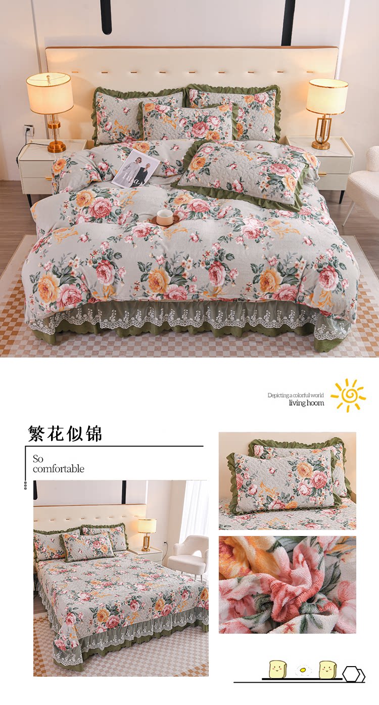 - 1,8 -метровая крышка кровати с четырьмя наборами [крышка кровати 250*260 стеганое одеяло 200*230] Подушечная рукава*2
