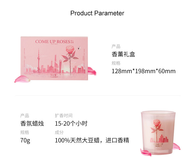 - Парфюмированная подарочная коробка с розой в составе, свеча, 50 мл, 70г
