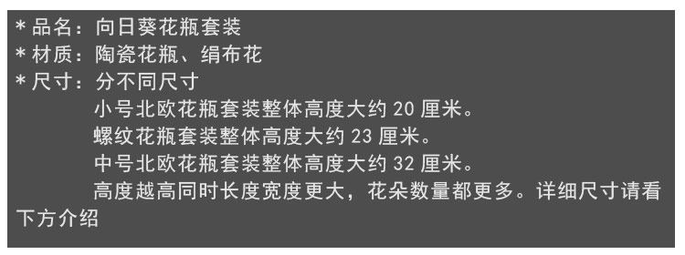 | Цвет: | Big Sunflower North Primary, Оранжево-красный, Коричневый, Зеленый, Светло-желтый, Флуоресцентный желтый, Золотой, Цвета шампанского, Кремовый, белый, Белый, Бежевый, Розовый, Красный, Светло-серый, Темно-серый, Желтый, Темно-зеленый, Цвет лотоса, Армейский зеленый, Рыжий, Хаки, Черный, Серебряный, Светло-фиолетовый, Роза красная, Бордовый, Оранжевый, Лимонно-желтый, Лазурный, Ярко-желтый, Абрикосовый, 4 луча подсолнечник+средняя скандирующая ваза, 2 Bunch Xiangyang Flower+Средняя скандинавская ваза, Темно -оранжевый красный, Два -корлорная глубина пиона пурпурно+серая бутылка, Два -коррор пион -синий -грин+серая бутылка, Прозрачный, Цвет, Желтовато-коричневый, Темно-коричневый |