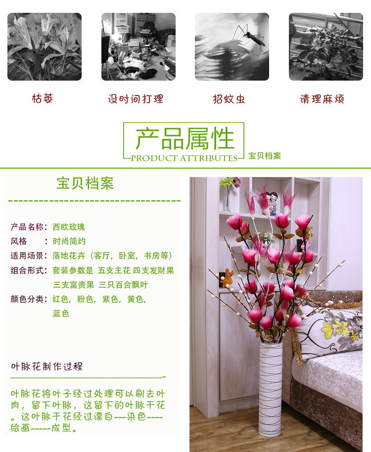 Листья вены сухие цветы гостиная цветы цветы, сушеные цветы розовые фальшивые цветочные симуляции ветви дома Новый дом
