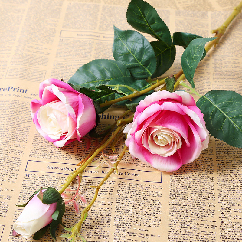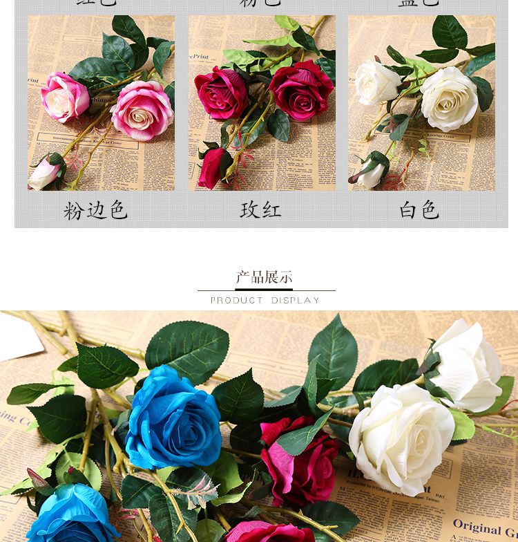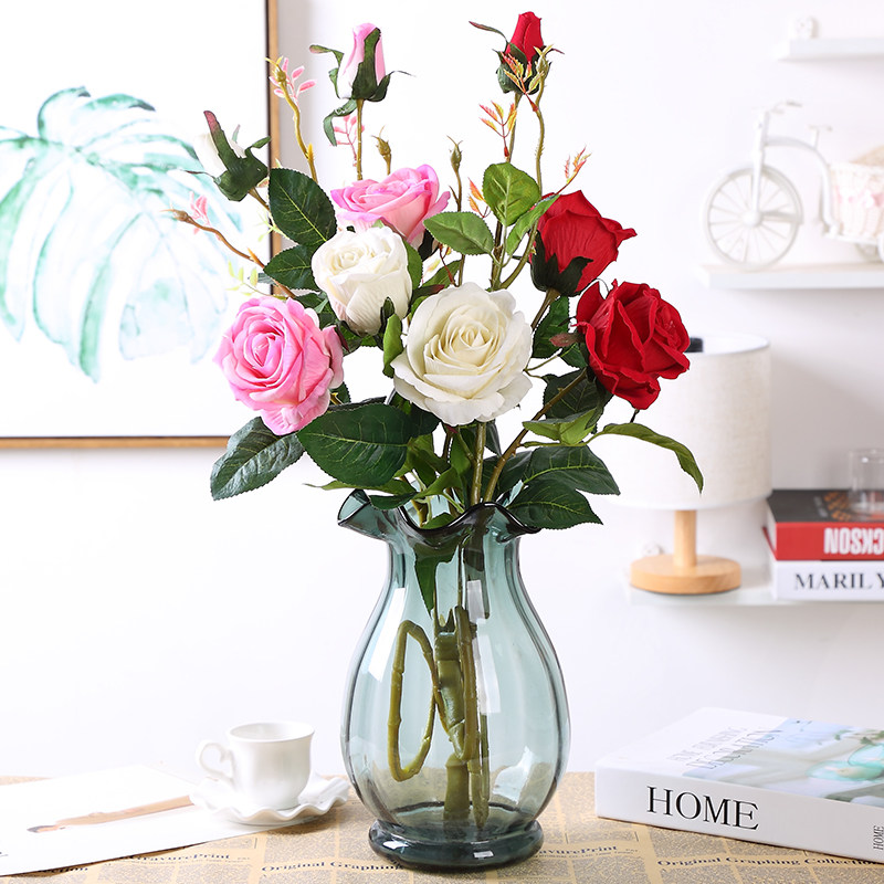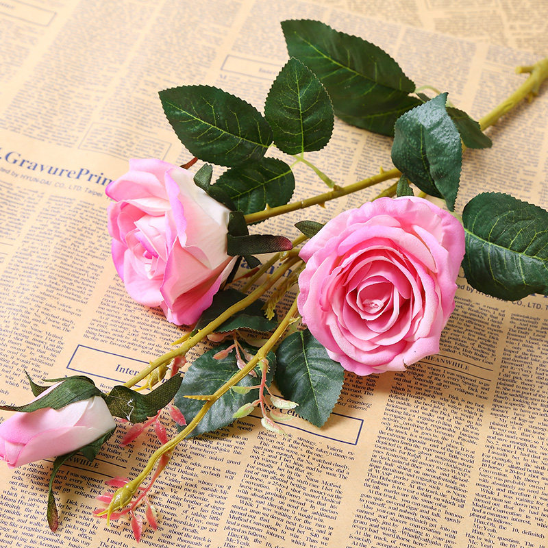 3 головы длинные ветви бархатная розовая симуляция розы