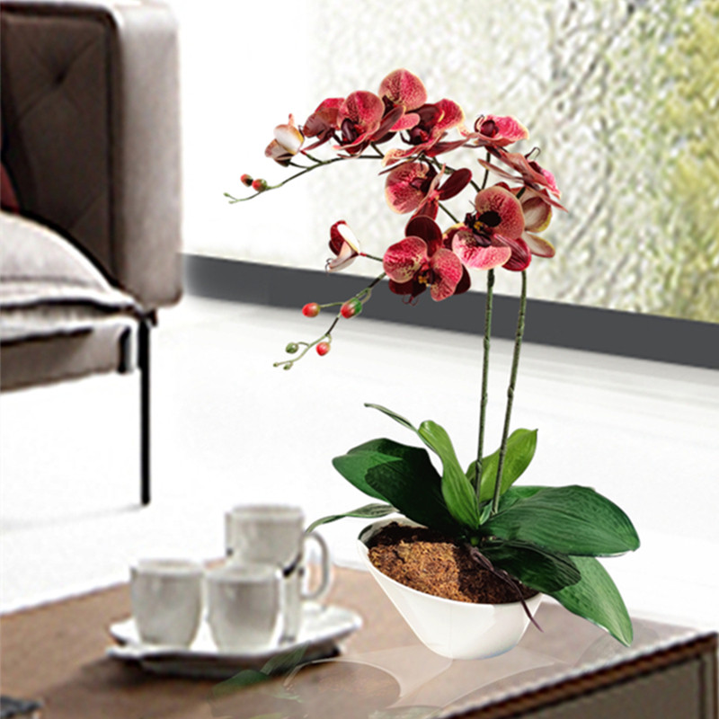 Hejia PU полная рука ощущение большой искусственный цветок Фаленопсис белый фарфоровый цветочный горшок набор стол журнальный столик украшения на подоконнике искусственный цветочный горшок