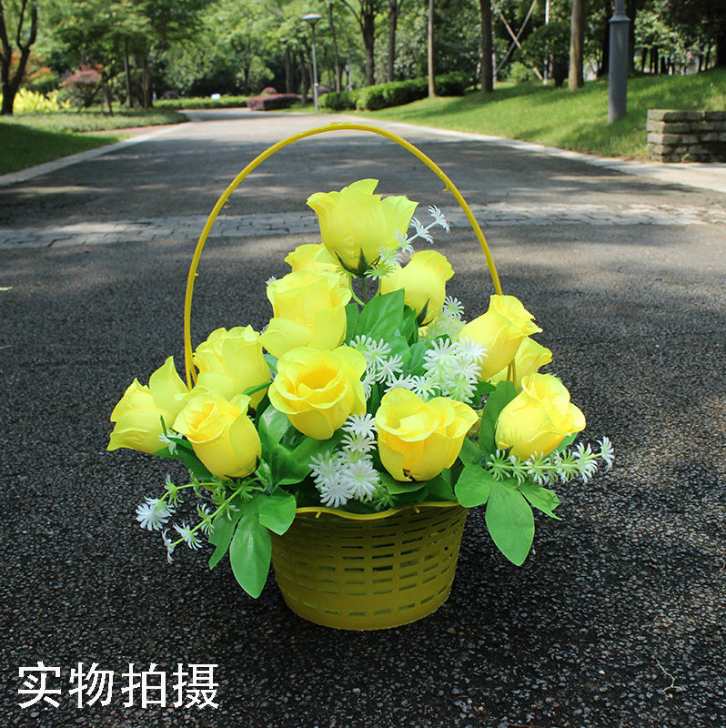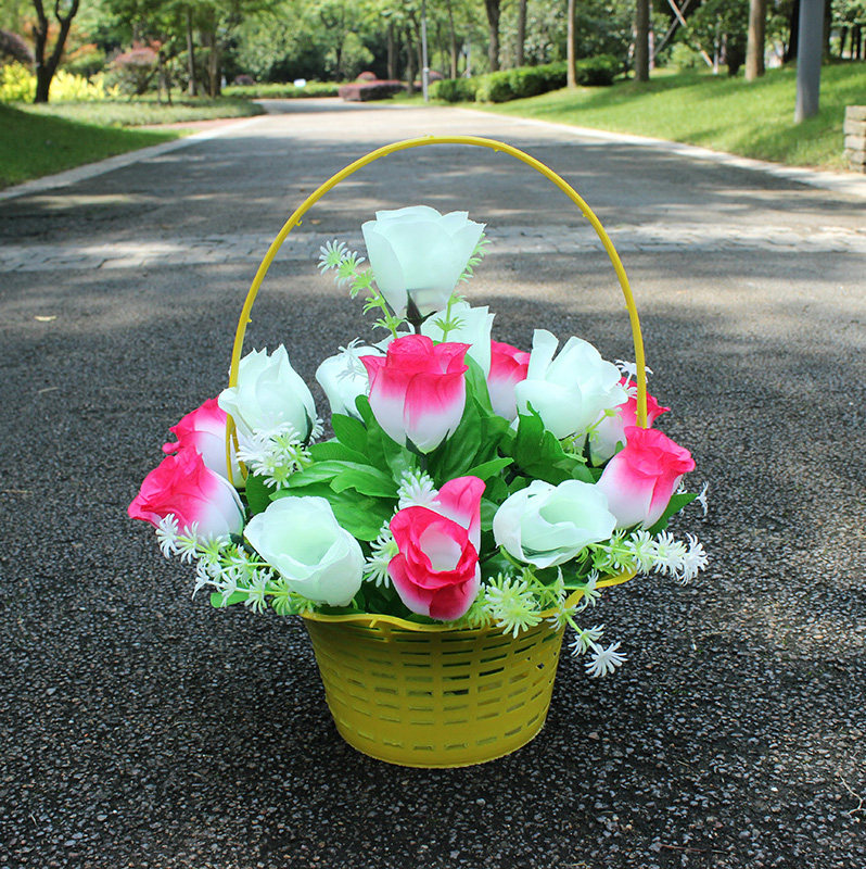 Шелковая цветочная корзина роза Дешевая Цинминг Цветочные каникулы могила