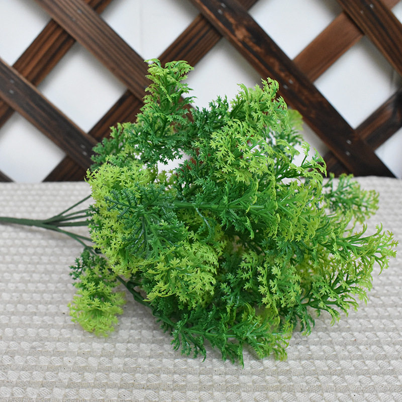 Одиночное моделирование Зеленое пластиковое фальшивое травяное гнездо гнездо кориандра, крем для моха, растения маленькая ручка декоративные листья