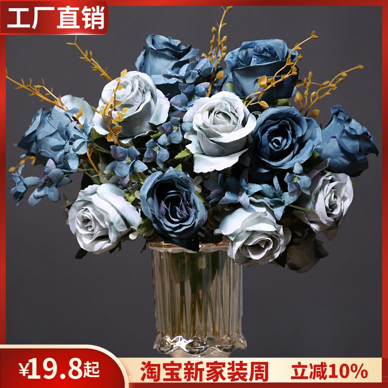 欧式 复古 油画 茶包 玫瑰花束 花瓶 插花 客厅 电视柜 装饰 假 花艺 摆件