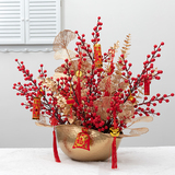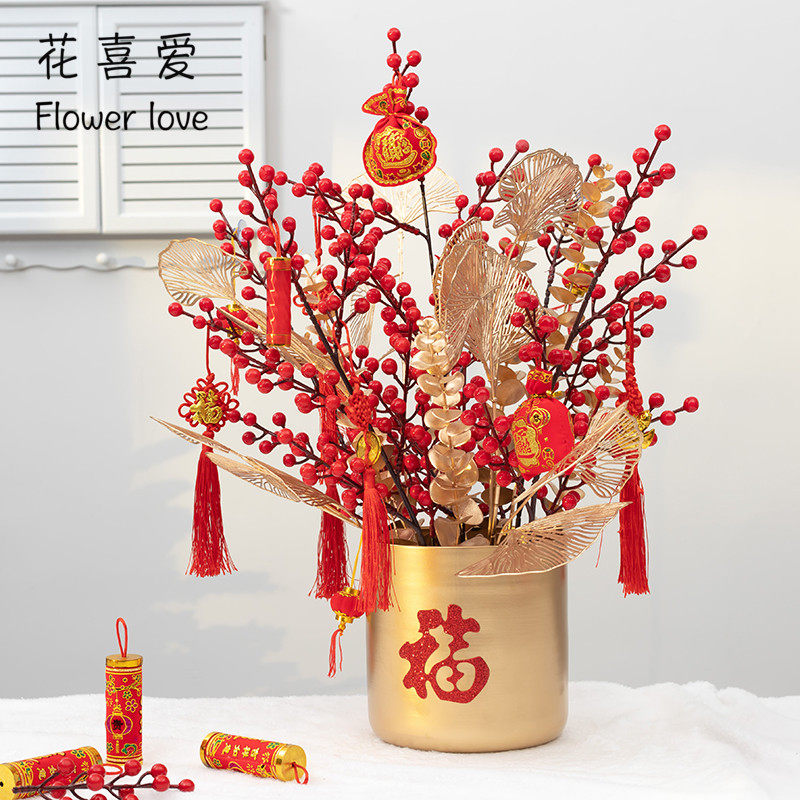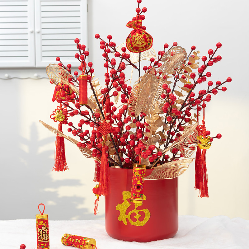 Реалистичные зимние декоративные цветы, красный цветочный горшок для гостиной, комплект