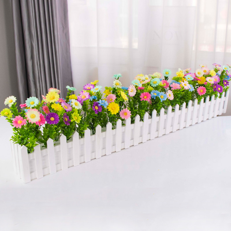 Моделирование цветы и фальшивые цветы и цветы размещены пластиковые угловые уголки цветов, чтобы покрыть симуляцию зеленое растение украшение, садовый пари