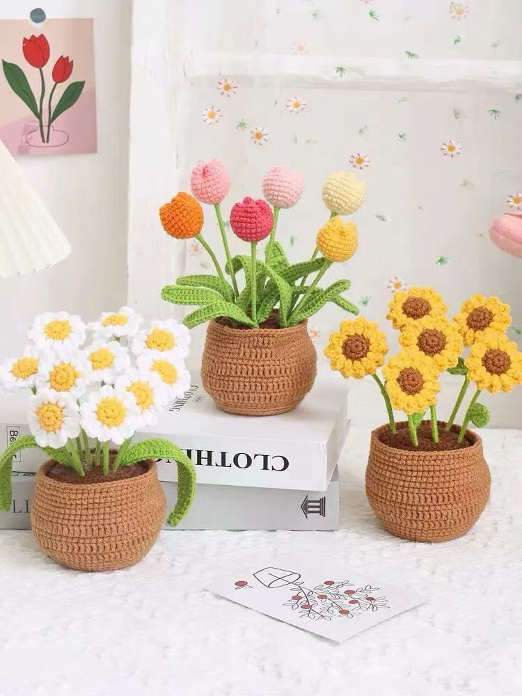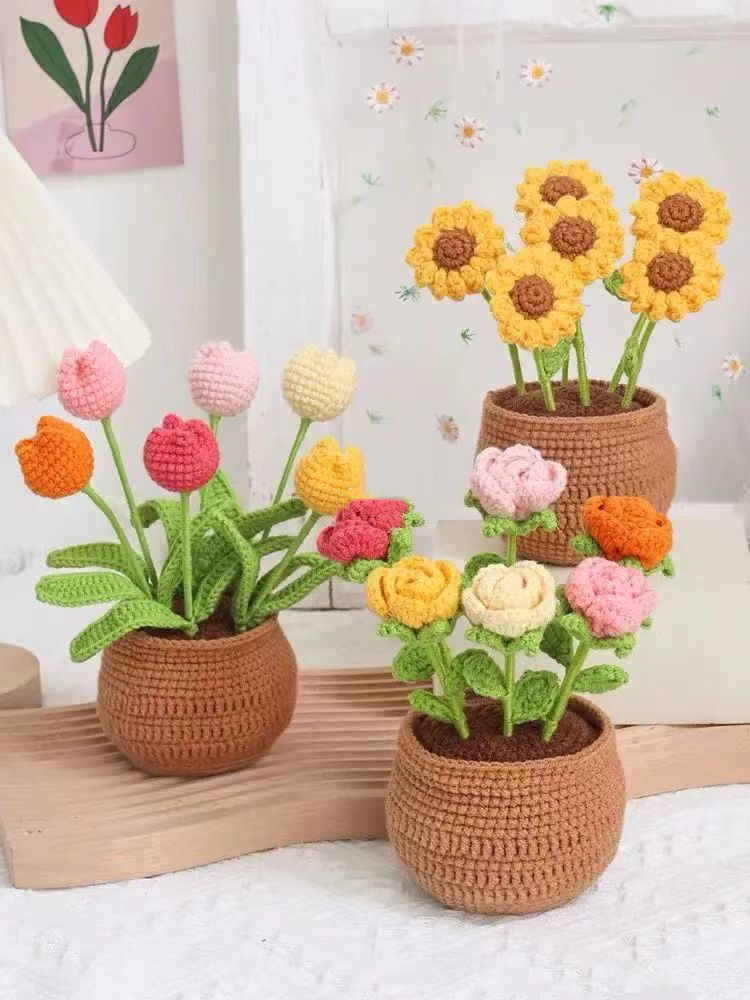 Цветочный горшок, плетеный набор материалов, DIY, подсолнух, орхидея, букет, связать своими руками