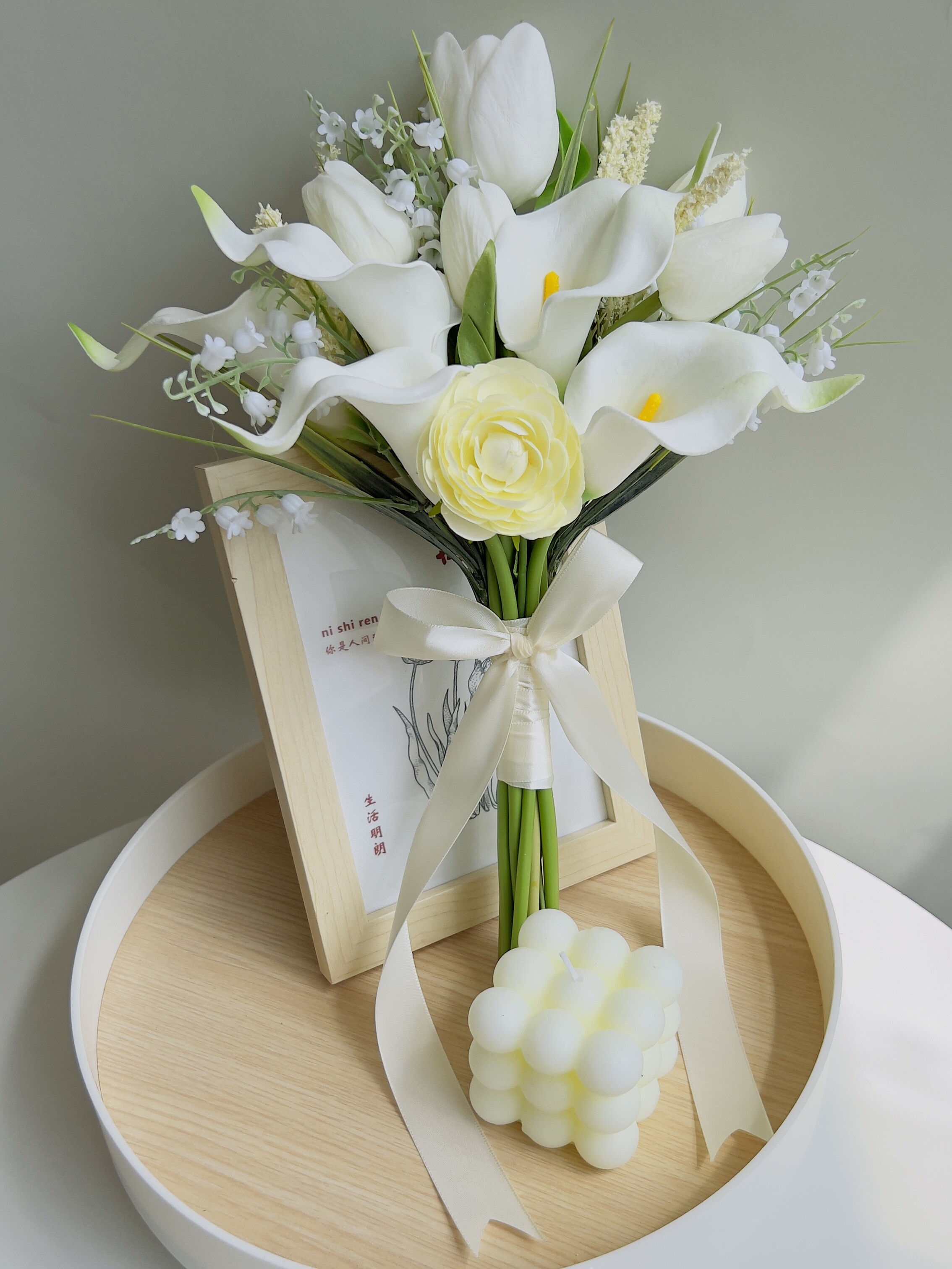 Новая невеста свадеб Сертификат с фотографиями делает фотографии, смешанные руки, букеты, домашние украшения размещены цветы