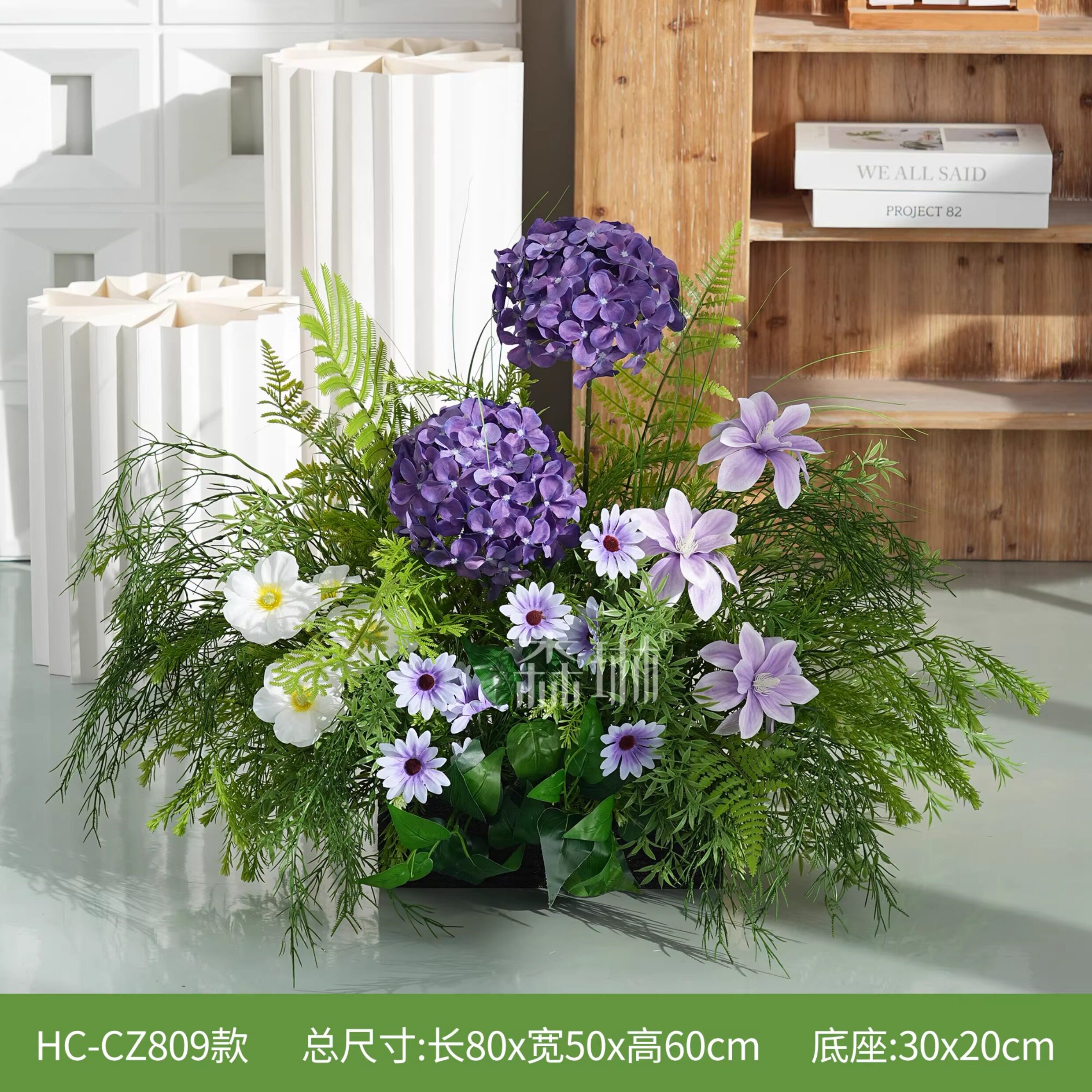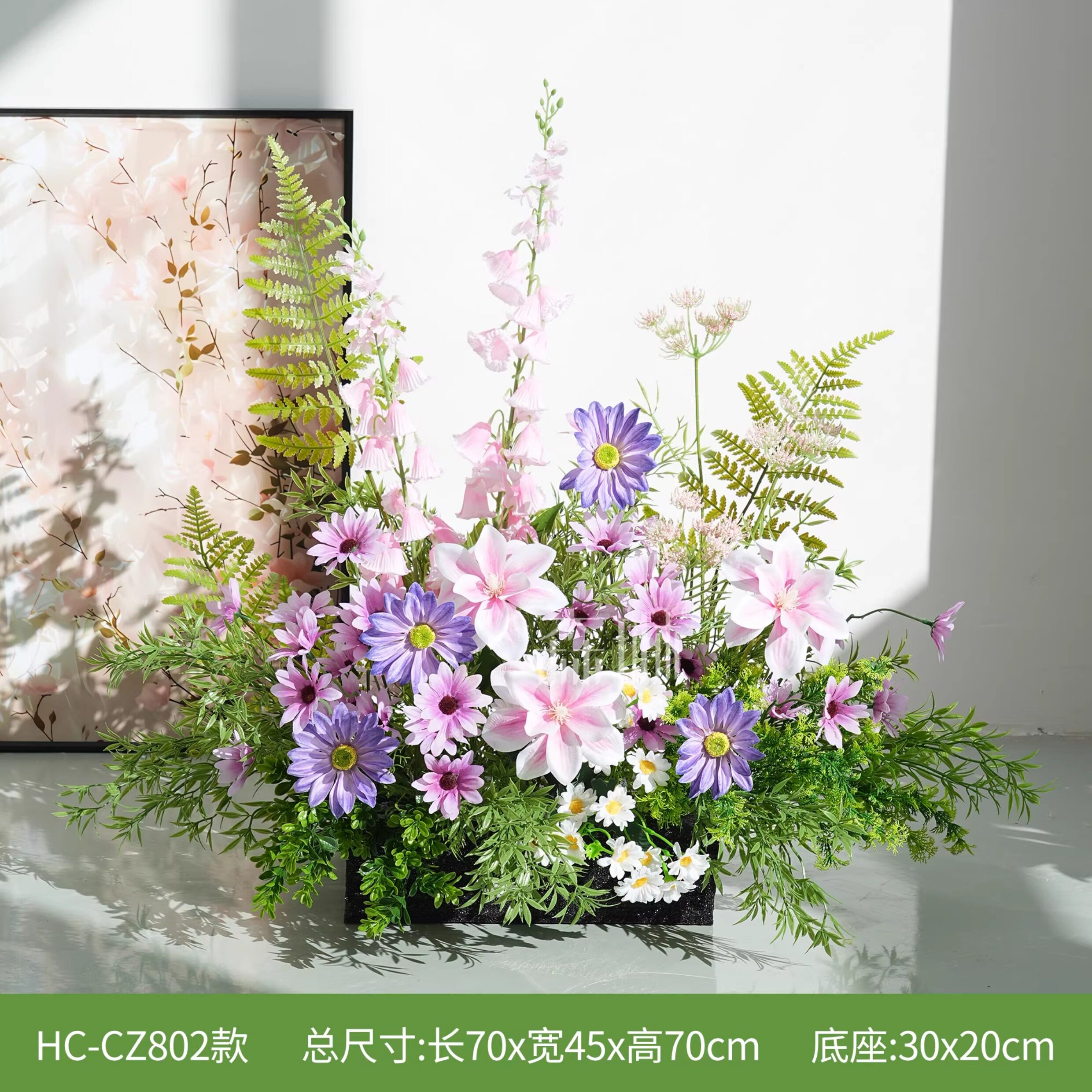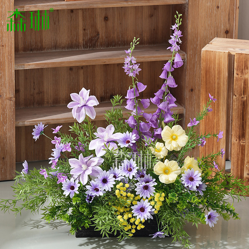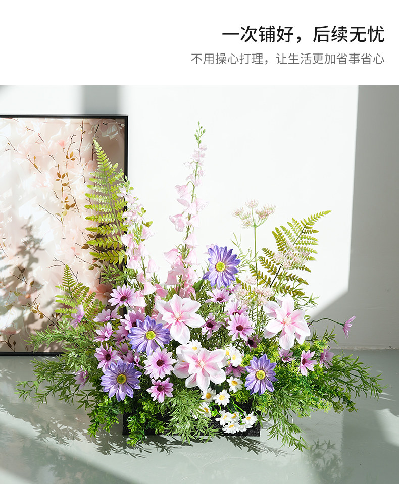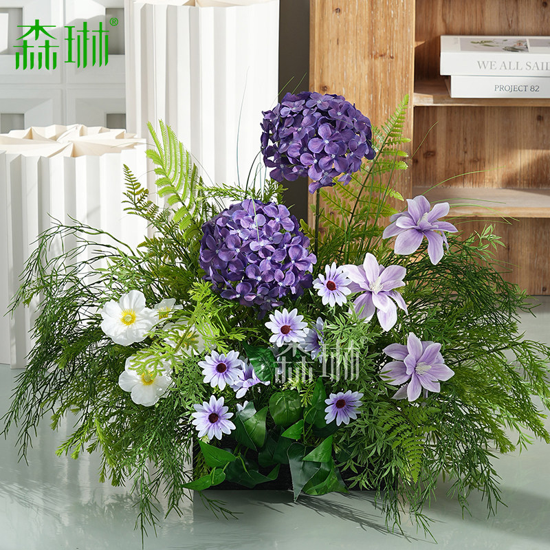 Искусственные цветы, искусственные цветы, ландшафтный дизайн, украшения торговых центров, фиолетовые цветочные украшения, зона регистрации, украшение зелеными растениями, планировка сцены