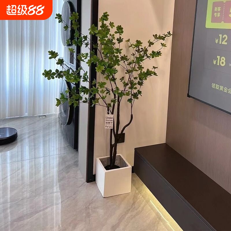 Имитация зеленого растения, подвесные часы, дерево, элитный свет, роскошное искусственное растение, украшение для гостиной в горшке, напольные украшения, атмосферное дерево