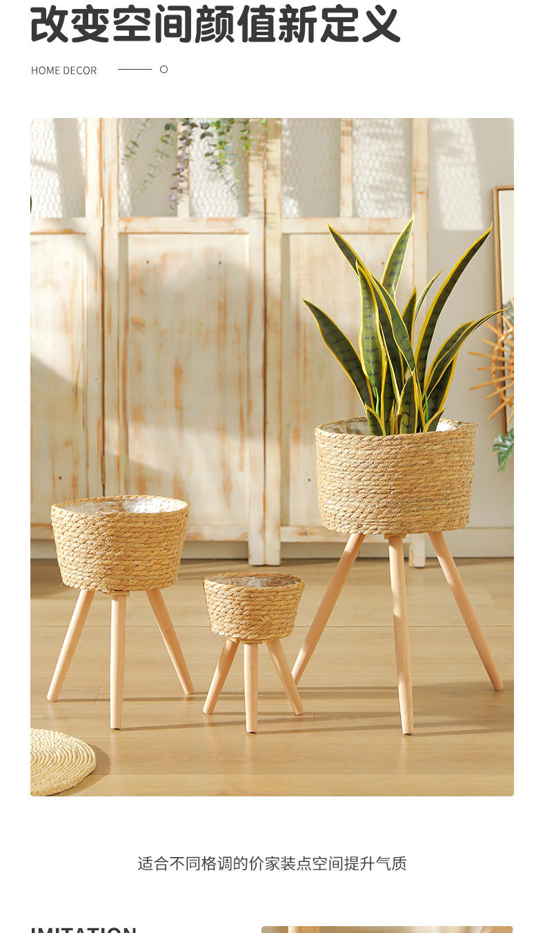 Скандинавский стиль, гостиная, растение, бамбуковая плетеная цветочная корзина, ротанговый горшок, балкон, плетеная напольная подставка для цветов, декоративный плетеный цветочный столик