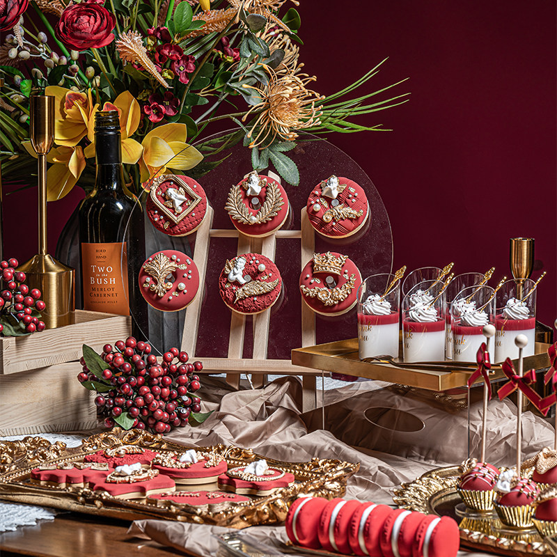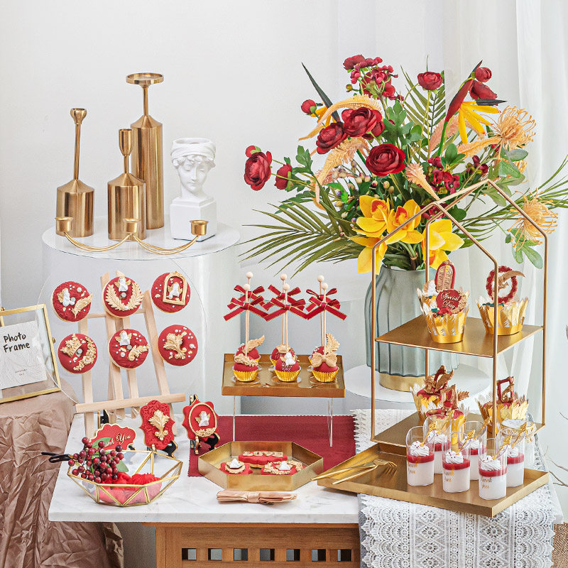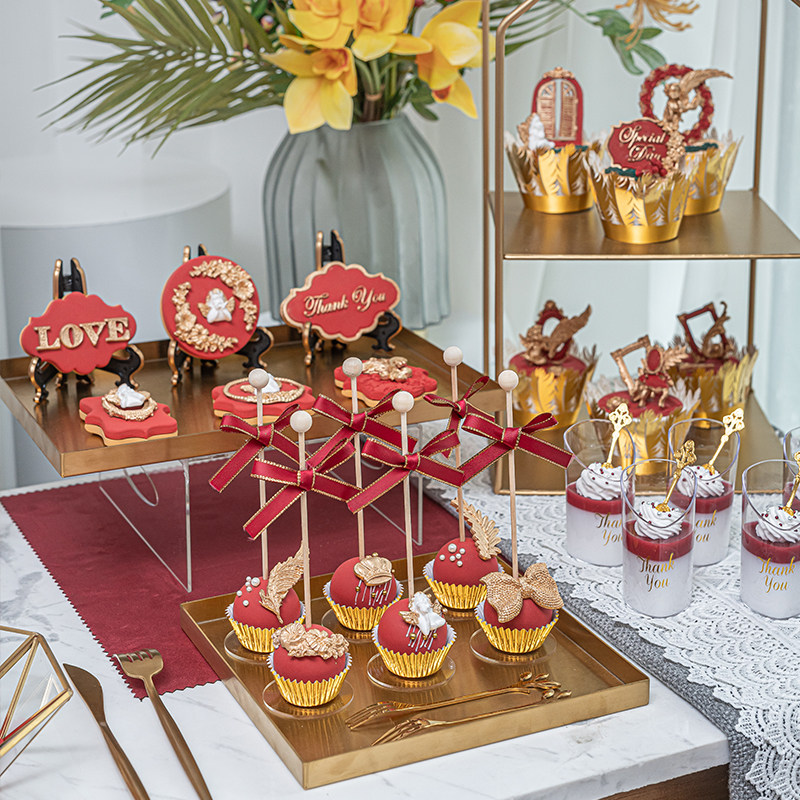 Модели модели торт европейский стиль золотистого сахарного печенья мусс Куб Кубкой Десерт Украшение