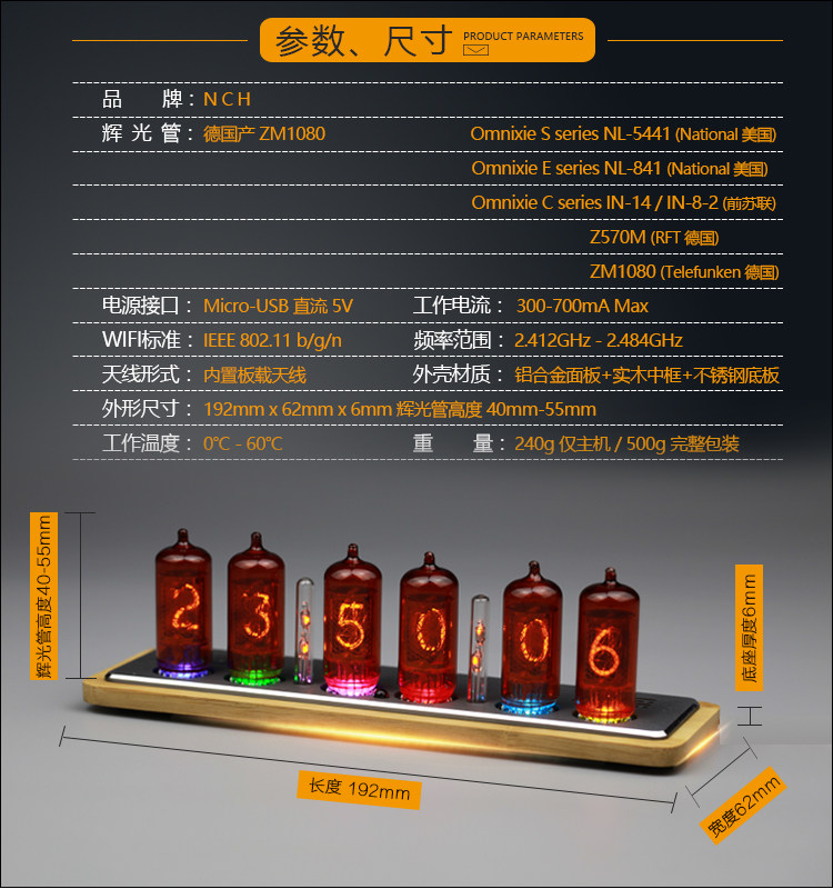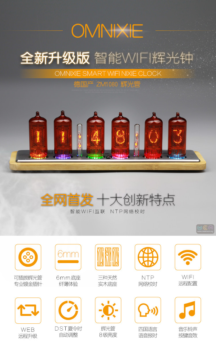 Zhenhui Guangzhong Citic Digital Tube Clock Germany ZM1080 Hui Light Tube Voice Report Wifiomnixie