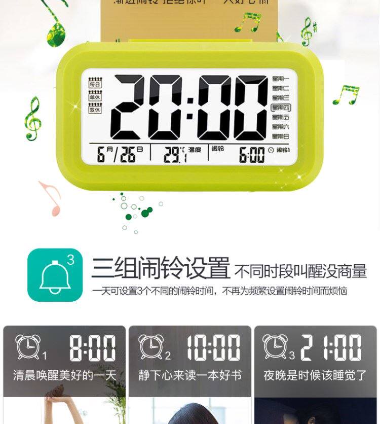 - 3 поколения будильника [светящаяся] стандартная версия зеленого 3