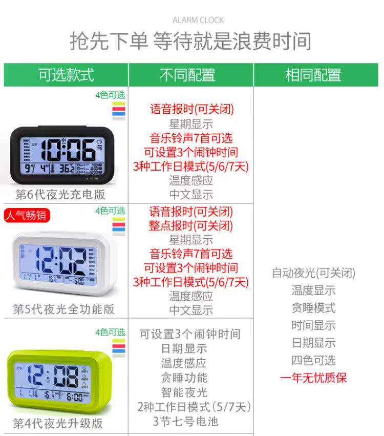 - 3 поколения групповых будильников [светящаяся] Стандартная версия белого 3