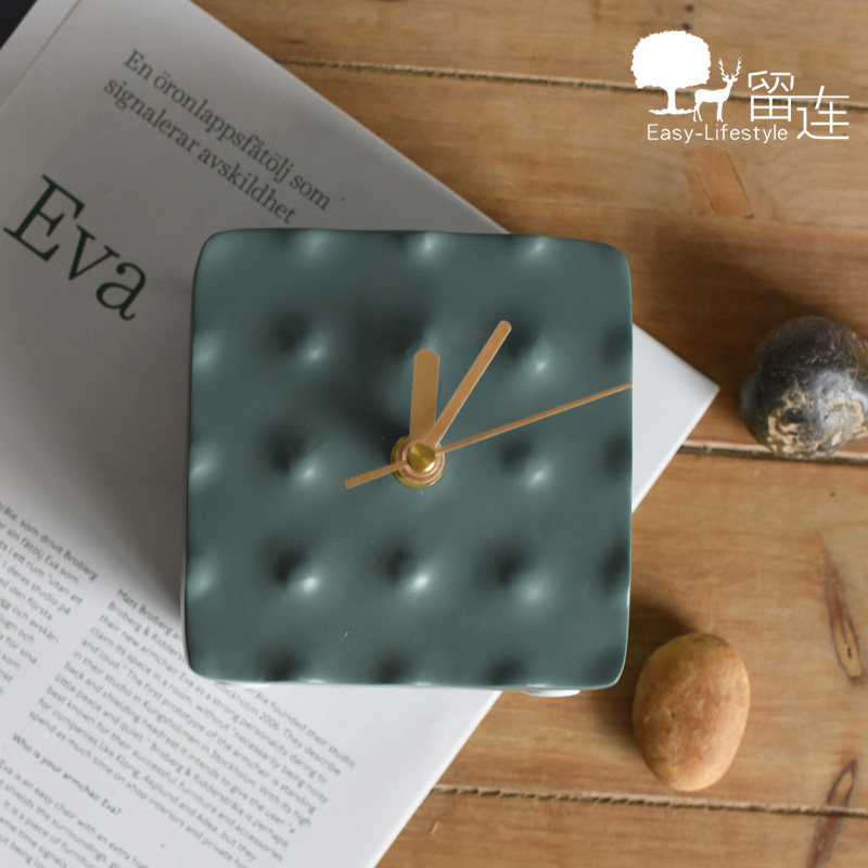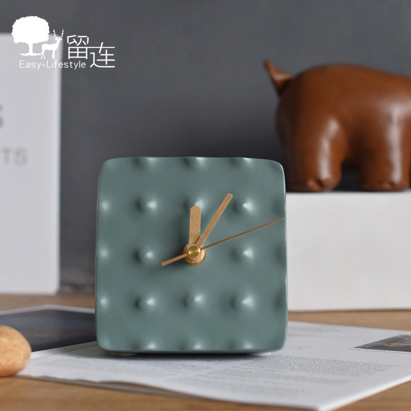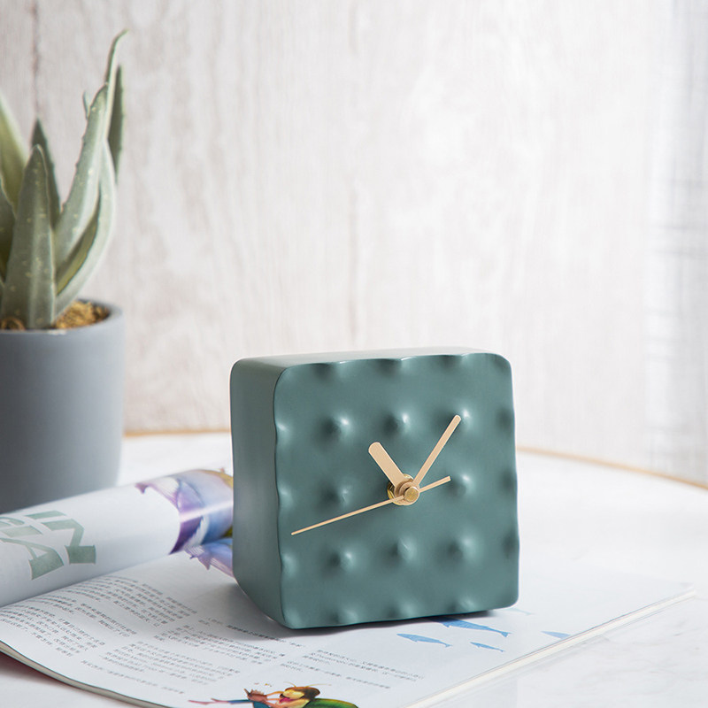 Зеленые смоляные квадратные настольные часы в горошек, настольные часы, украшения, модель, тумбочка для комнаты, рабочий стол, мягкое украшение
