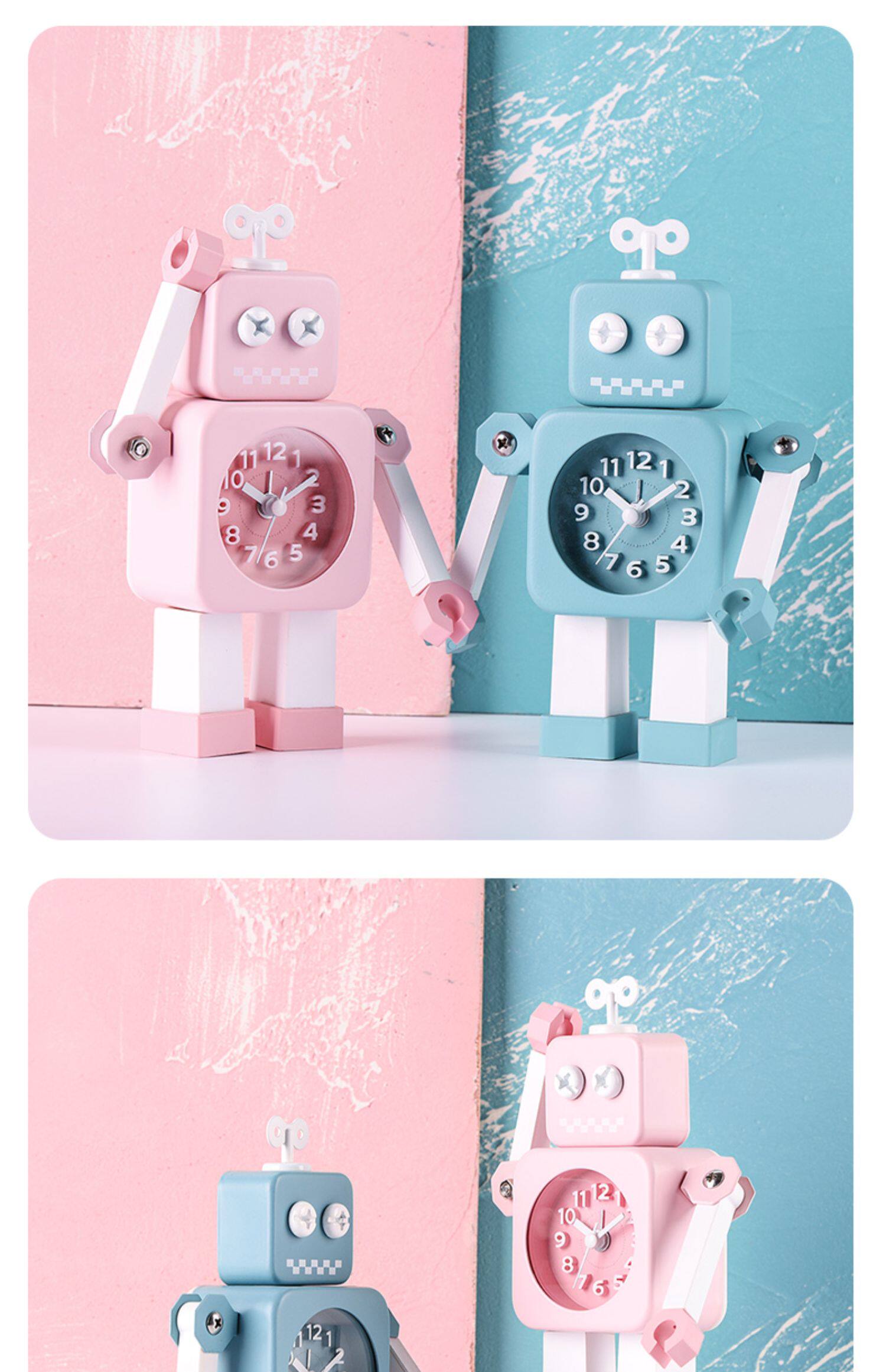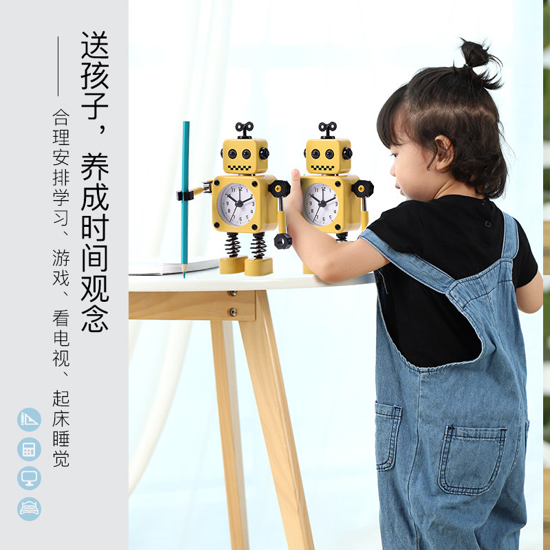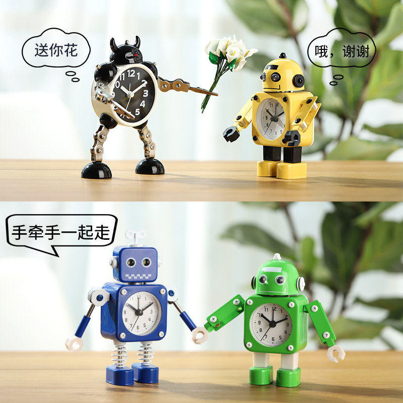 Креативный детский робот для школьников, мультяшные настольные часы для кровати