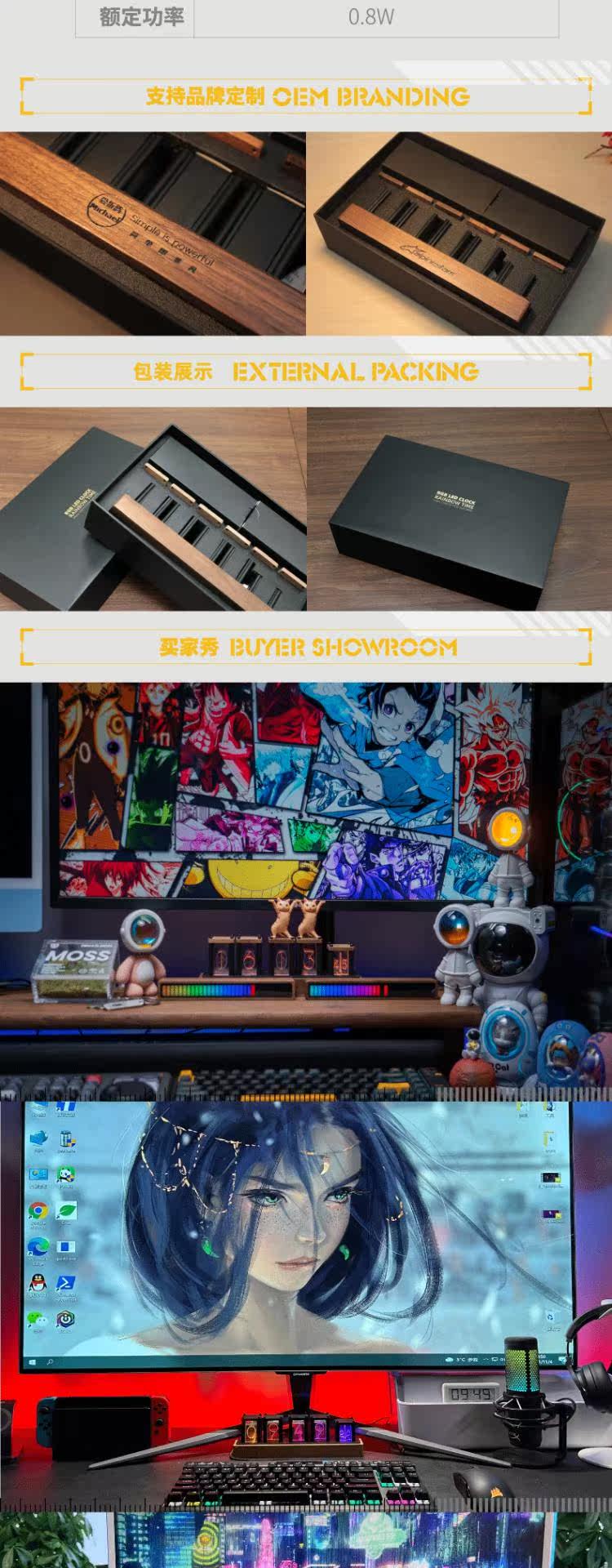 RGB Integrated Light Pipe Bubu Pochon Clock Creative Led Electronic Digital Bell Solid Wood Desktop для построения или украшения