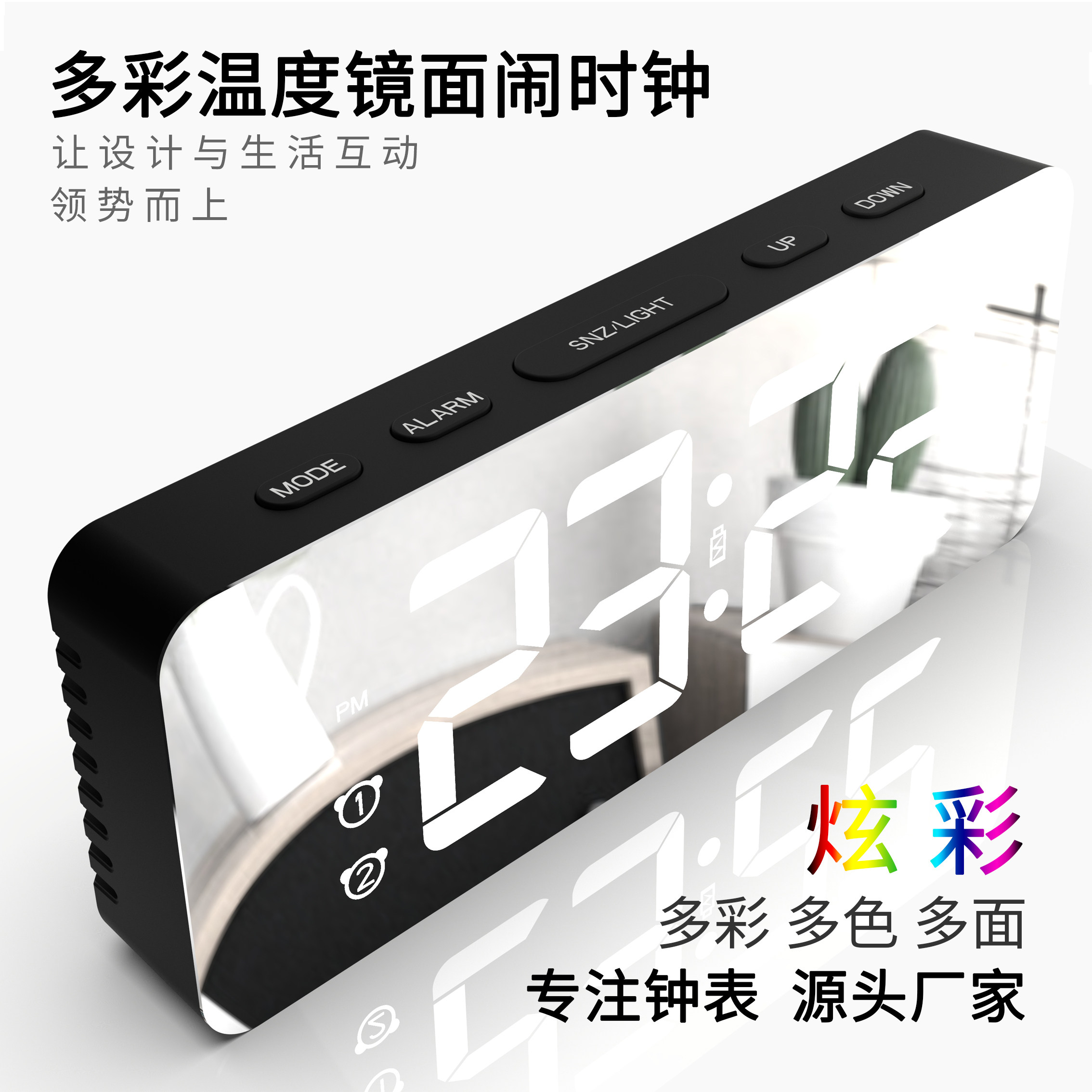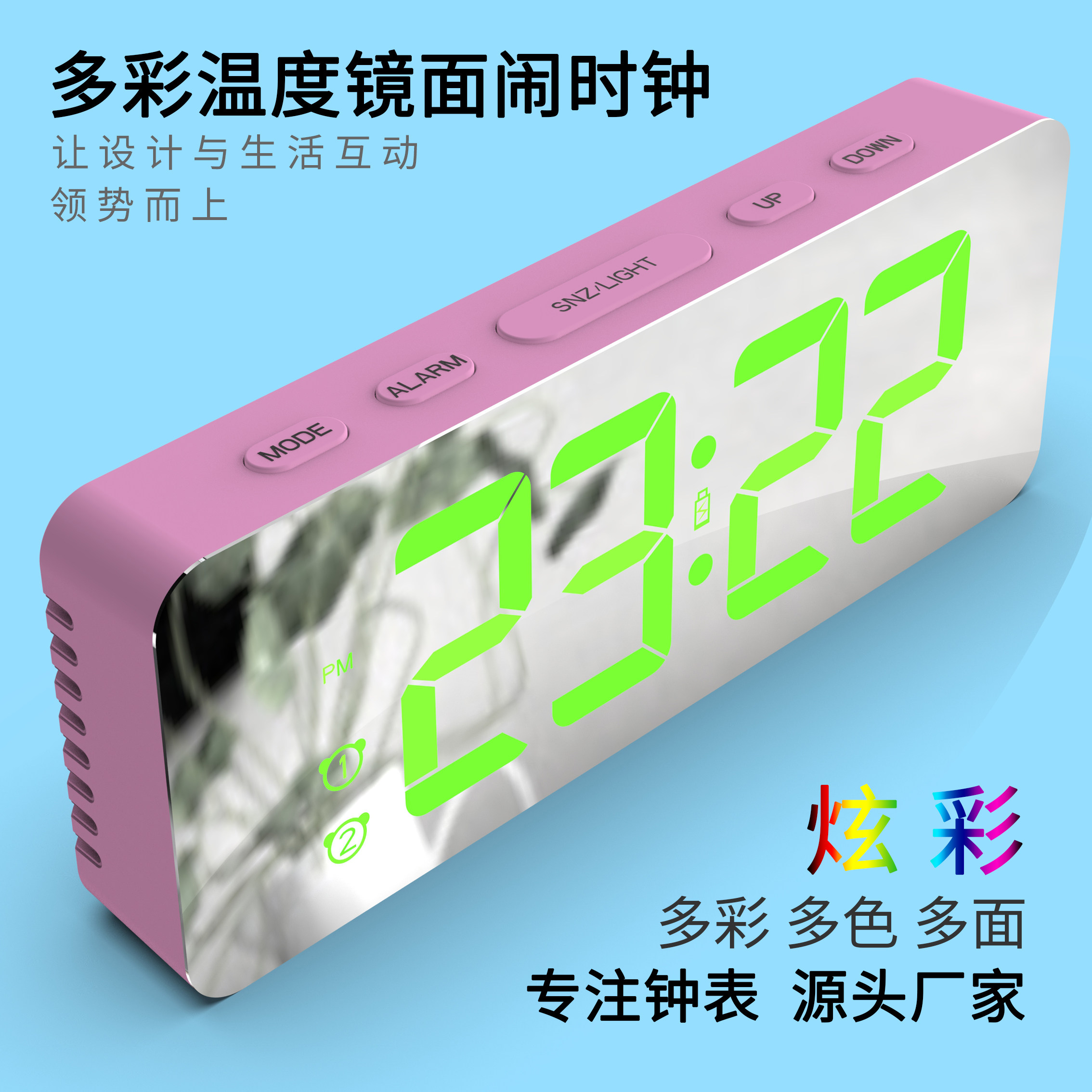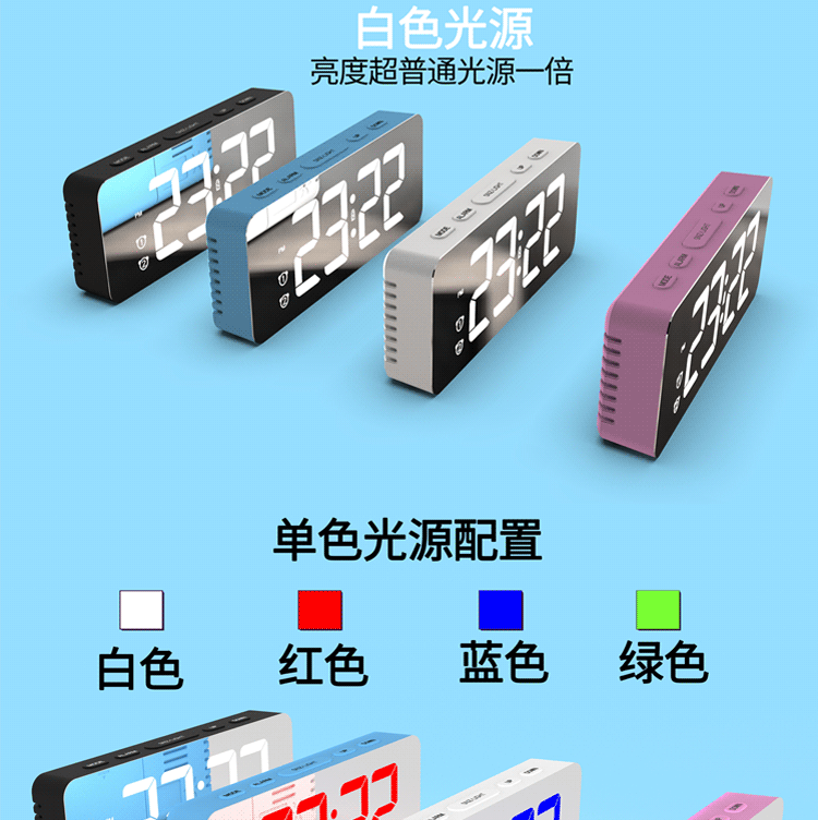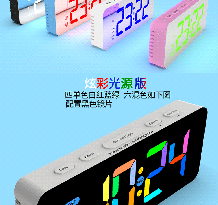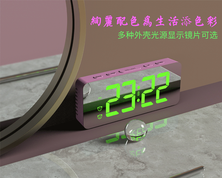 Зеркальный настольный настольный настольный настольный настольный столик, простая модная светодиодная модная цифровая электронная студентка выделенная будильница Цвет RGB RGB