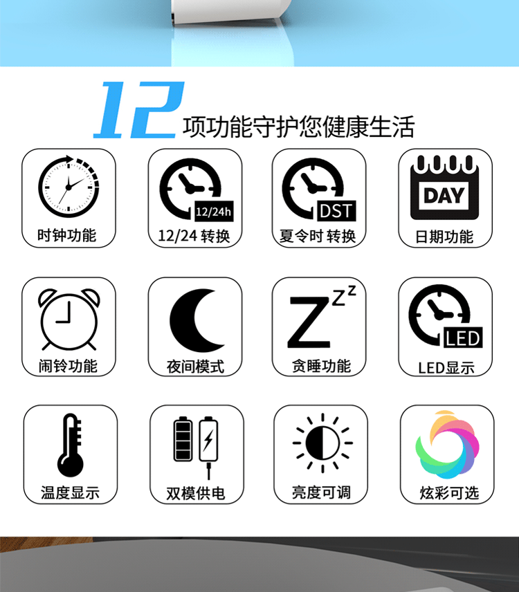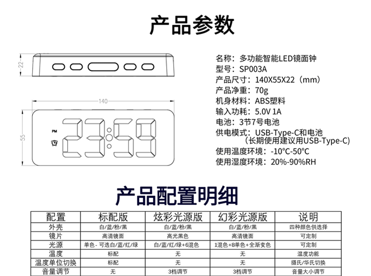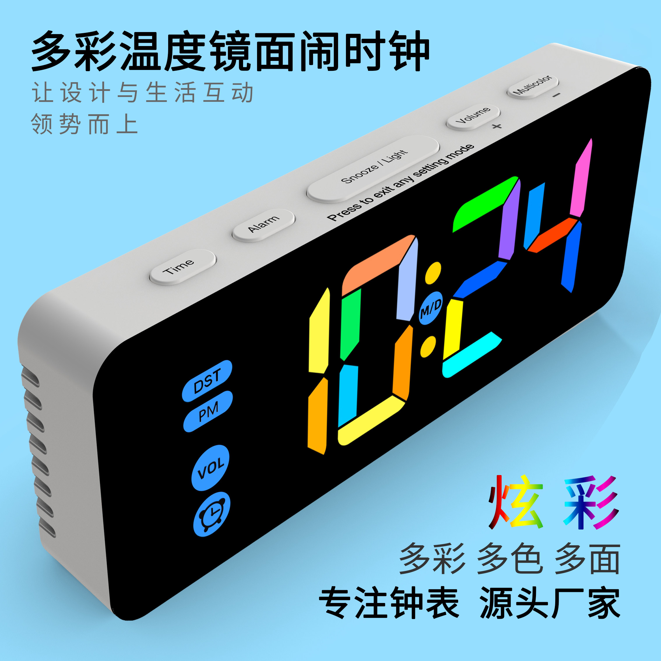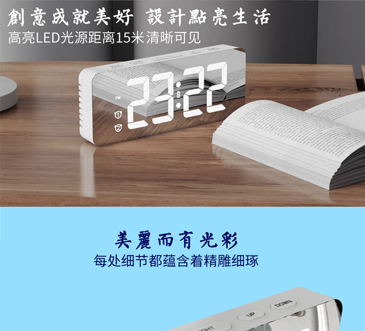 Зеркальный настольный настольный настольный настольный настольный столик, простая модная светодиодная модная цифровая электронная студентка выделенная будильница Цвет RGB RGB