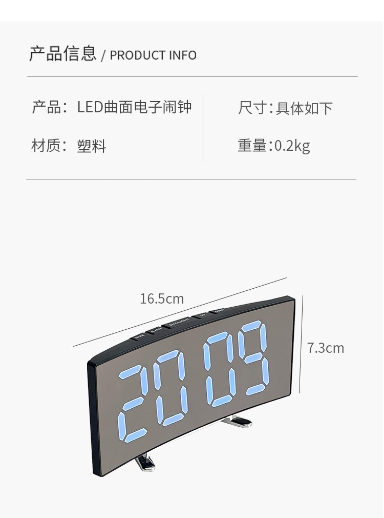 | Цвет: | Светодиодные изогнутые электронные часы [Время/температурно-дисплей ночи/режим Snooze] Плагин/батарея Двойной цели |