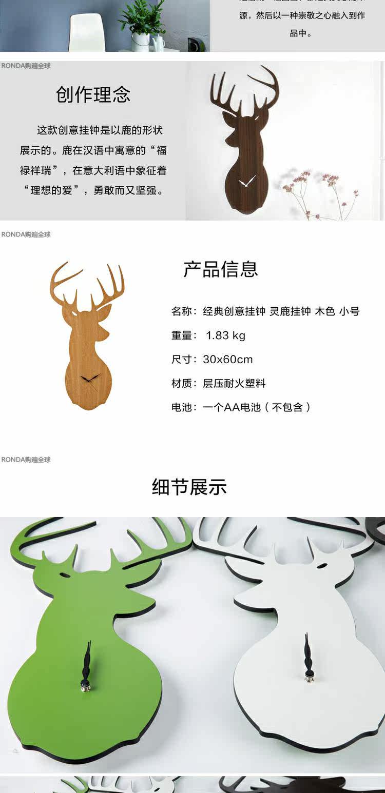 Италия импортирует Creativando Clavieful Creative Hanging Clock Creative Fashion Modern Минималистские оленьи часы