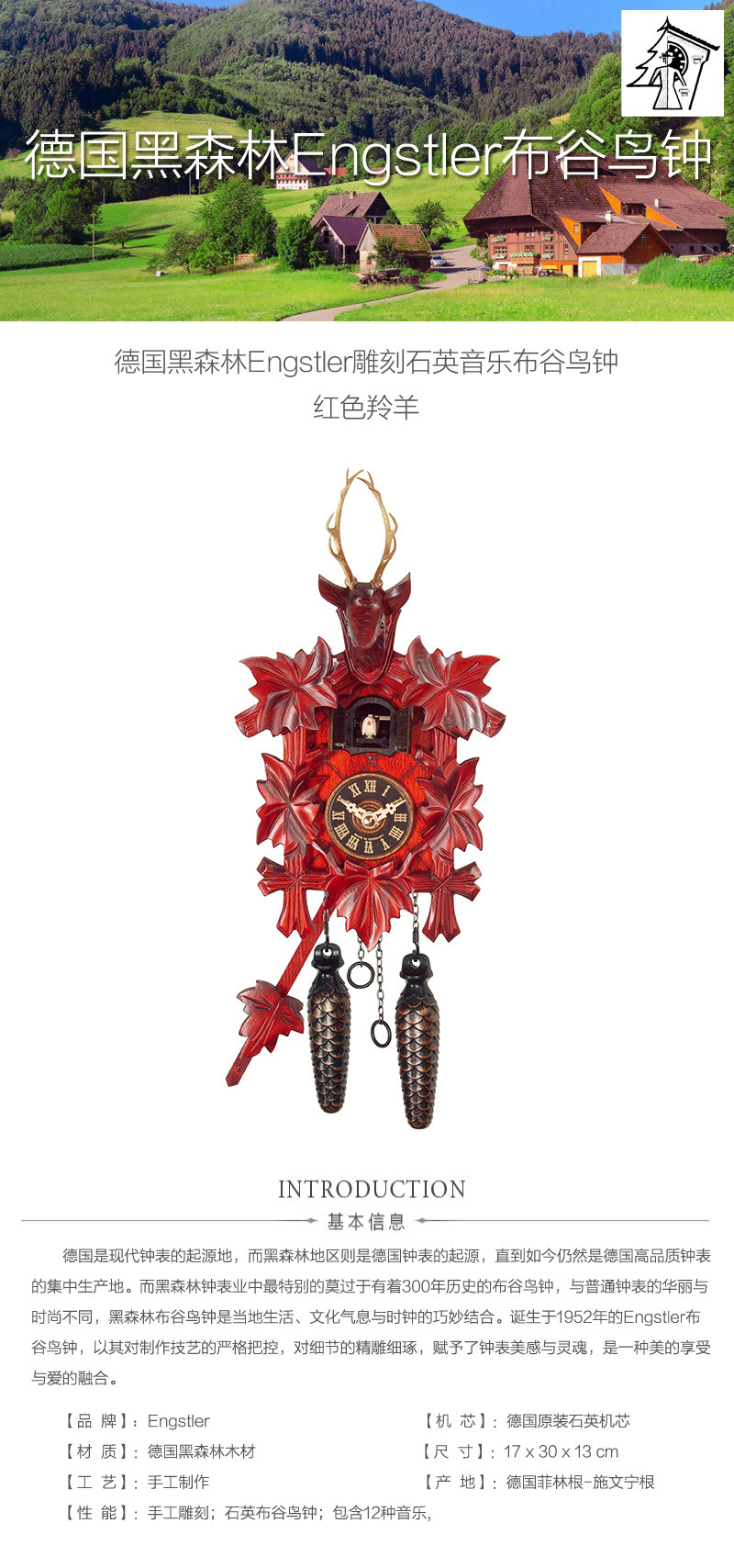 Немецкий Engstler European Retro Bharmest Crest Forest Crested Quartz Music Clate Gallery Clock Living Room Vinging Bell Antelope