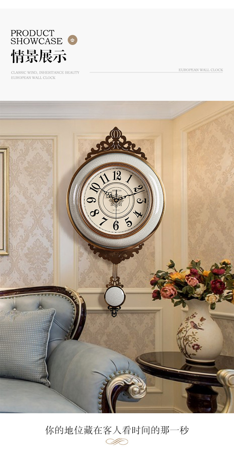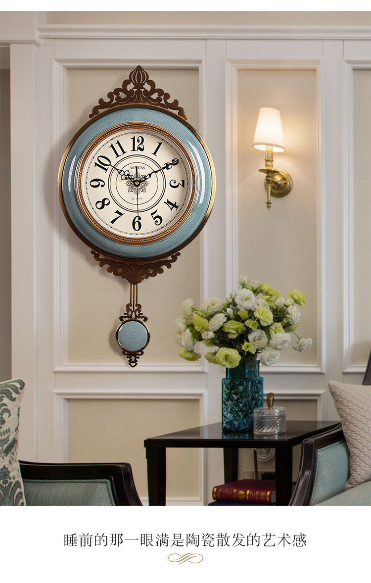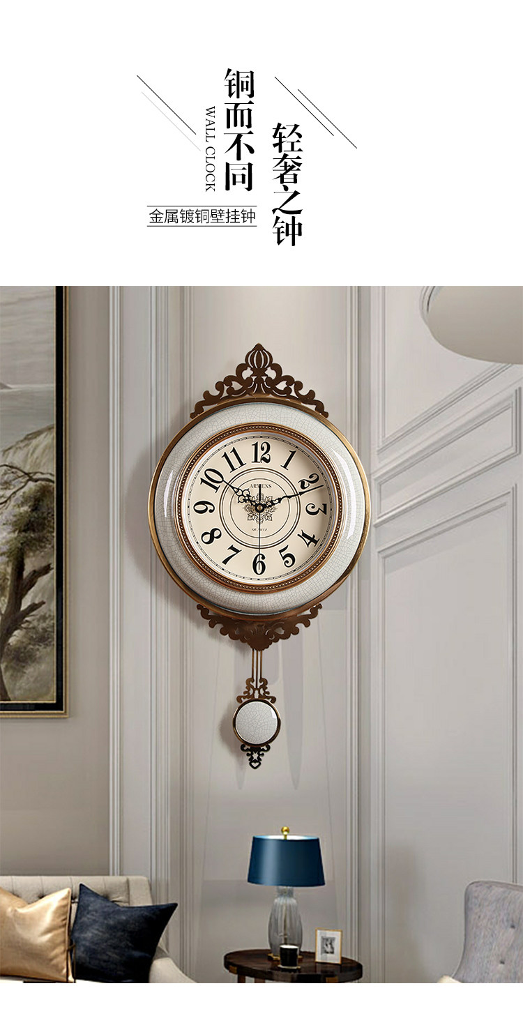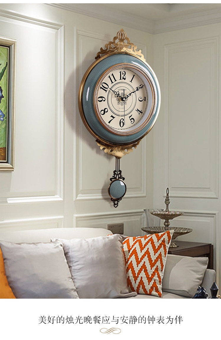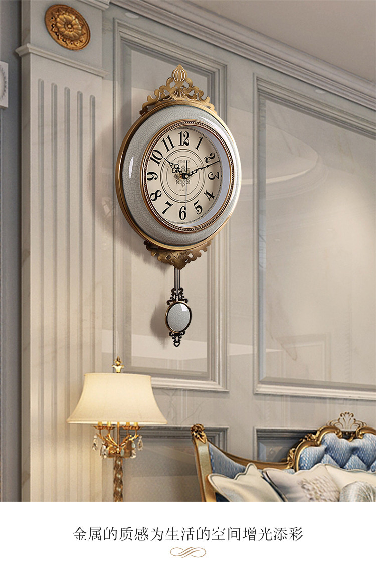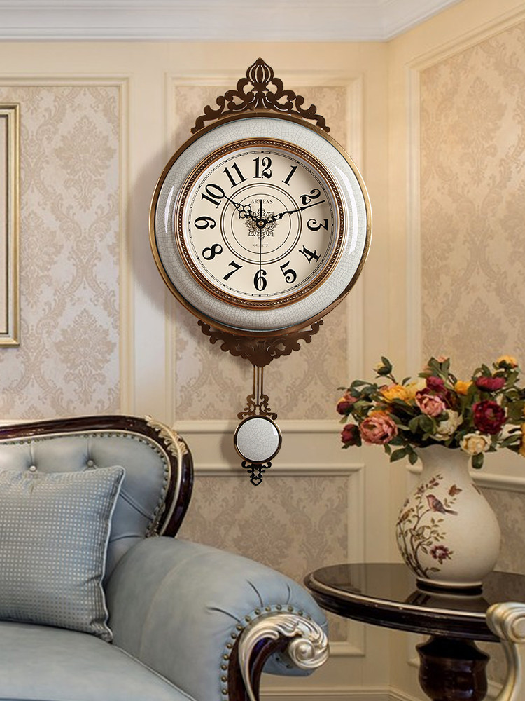 Легкая роскошная висящая колокольчика роскошная атмосфера, тихие качающие часы, современное металлическое творческое украшение американские домашние часы