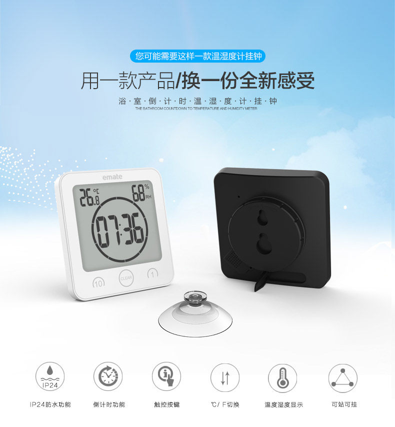 Yimei Special Want Electronic Wanging Tempret, температура и влажность обратный отсчет, тихий анти -ффо, водонепроницаемые часы всасывания кухни.