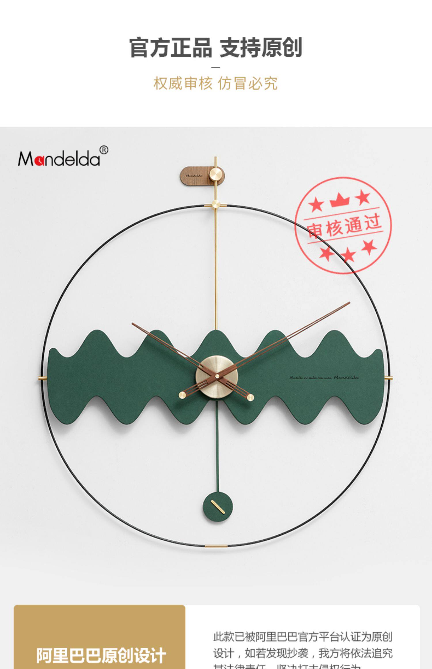 Mandelda Nordic Light Luxury Clocks Подачи часы гостиная Личная творческая фоновая фона украшения стены современный современный