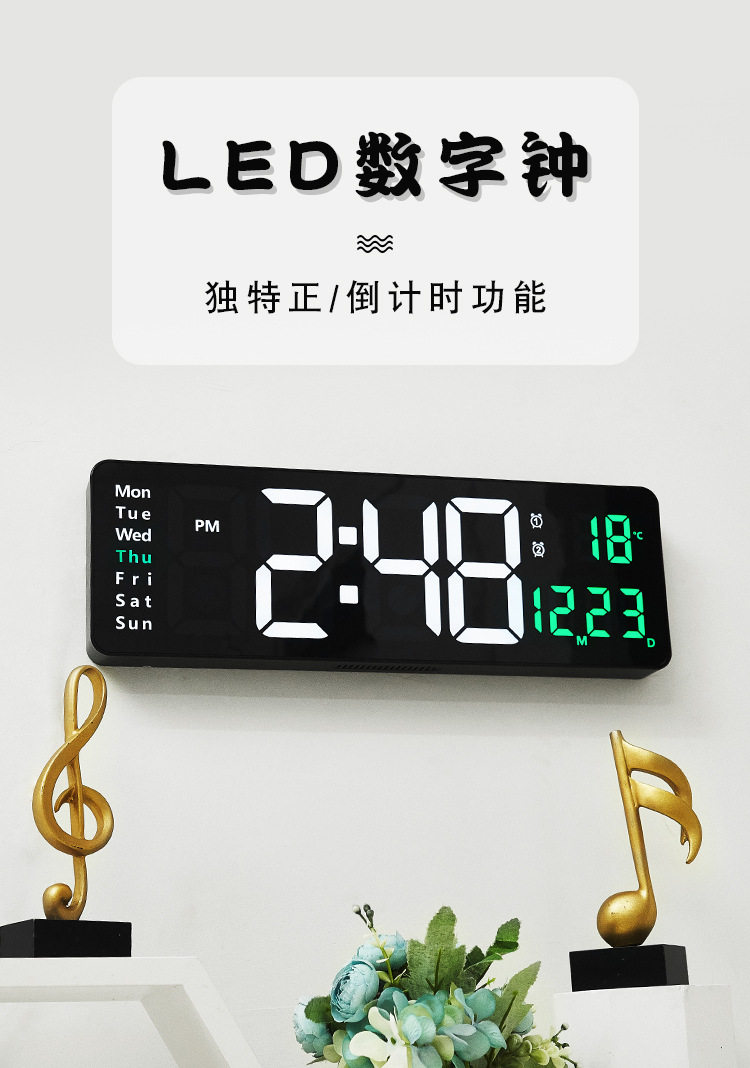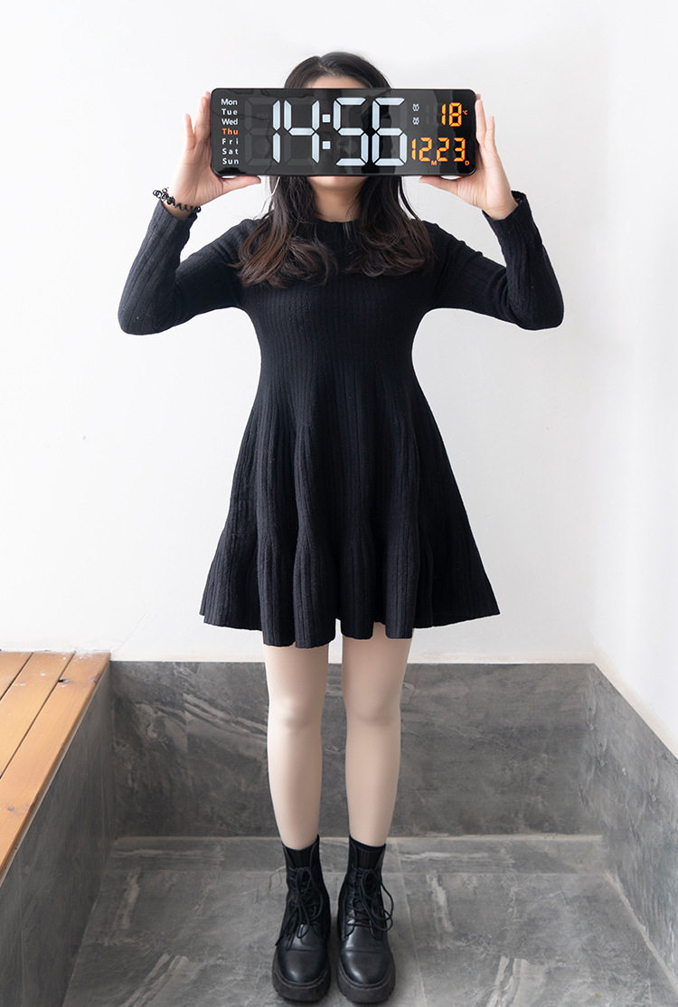 Северный европейский прямоугольник с большим экраном большие экраны черные часы цифровые часы минималистские гостиные висящие часы светодиодные настенные часы