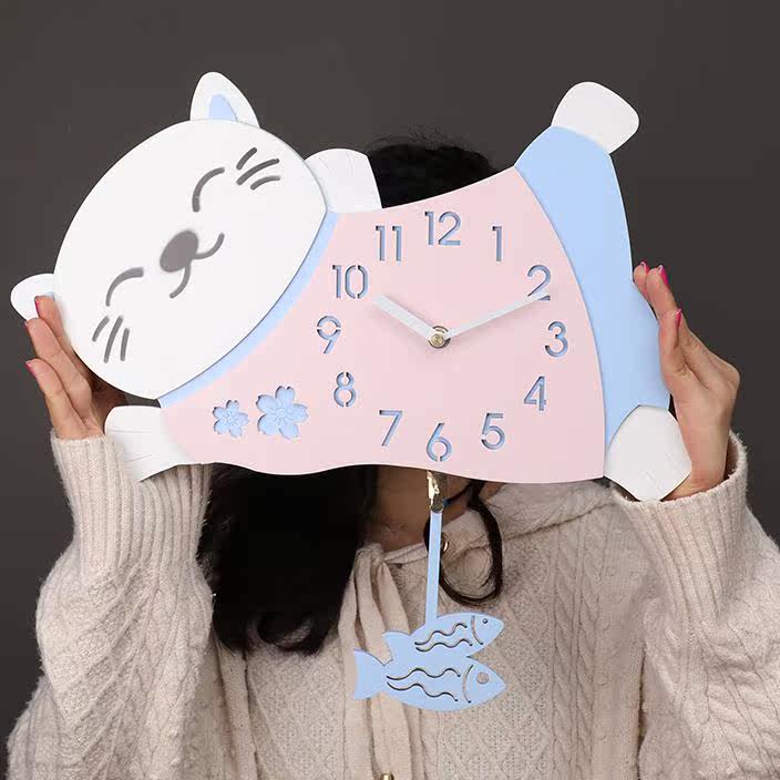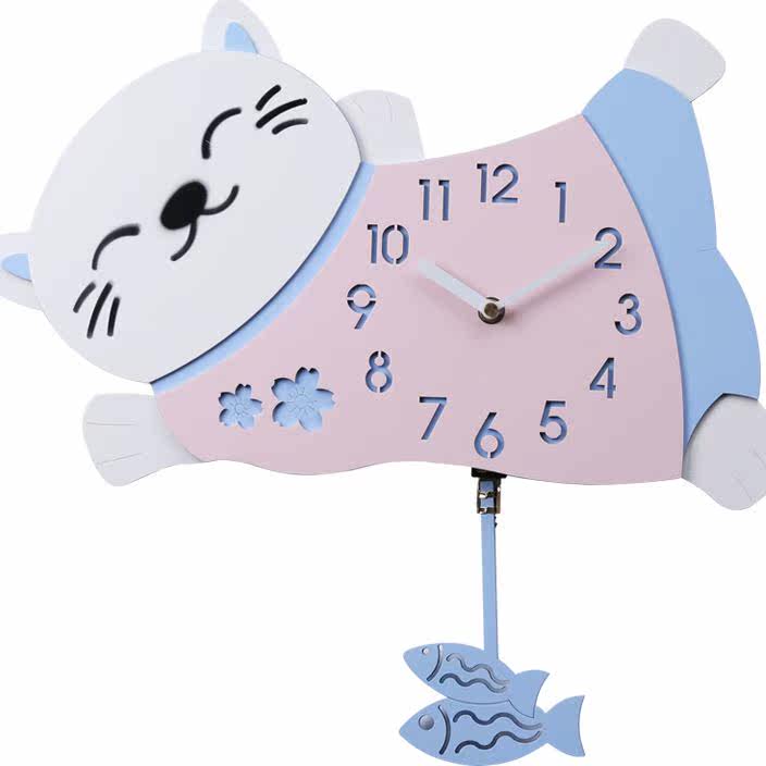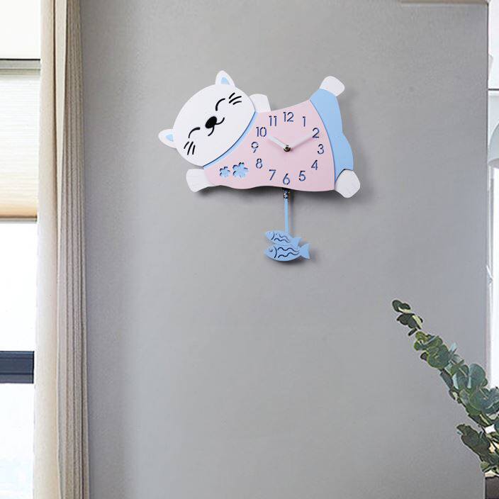 Симпатичный кошачий хвост встряхивает часы гостиной в детской комнате.