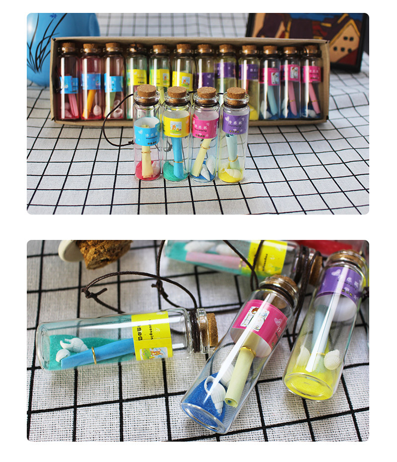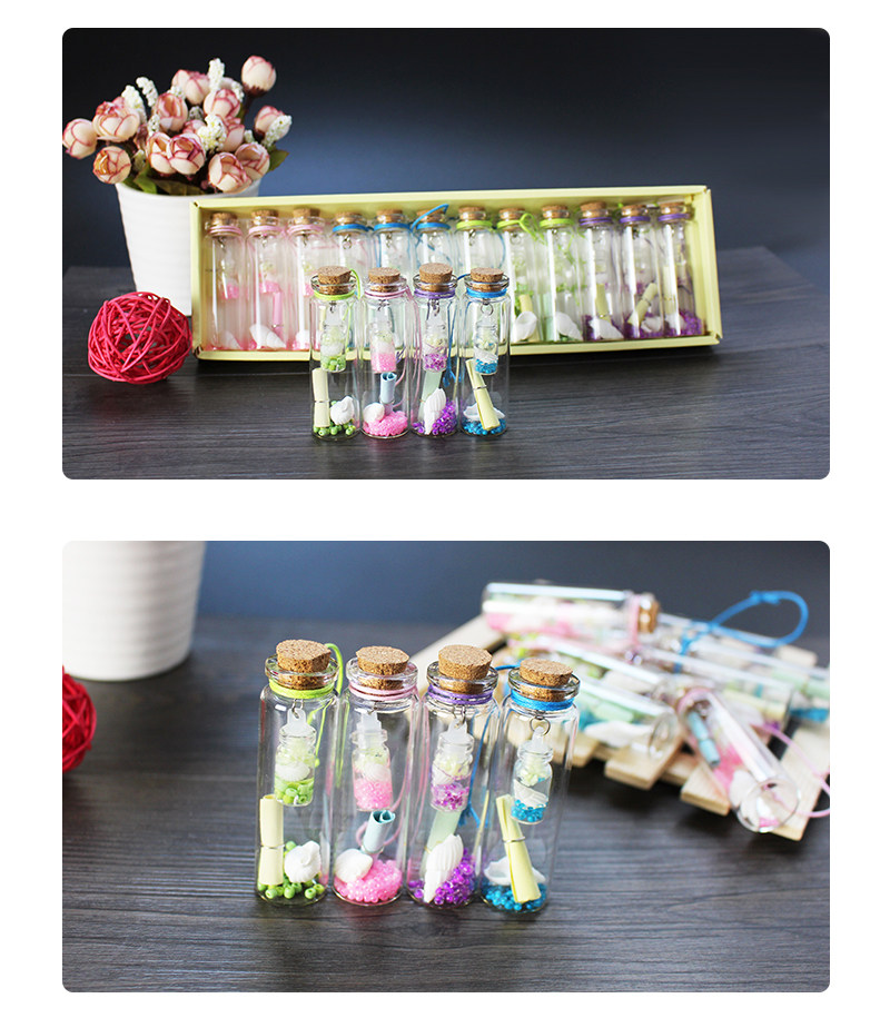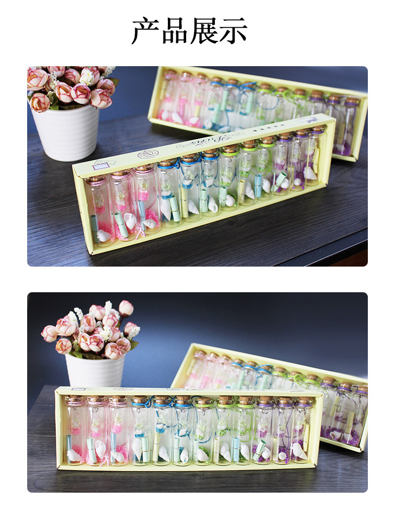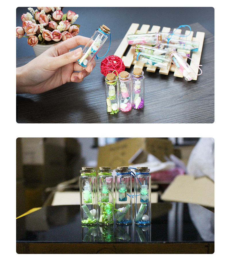 Ночь Xu Wish Bottle Component: бутылка+деревянная штепсель+веревка+бутылка в бутылке (внутри - светящийся песок)+раковина+Пожелай бумага+маленькие бусинки внизу внизу.