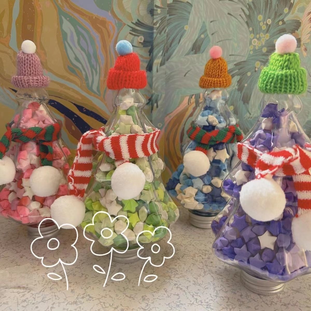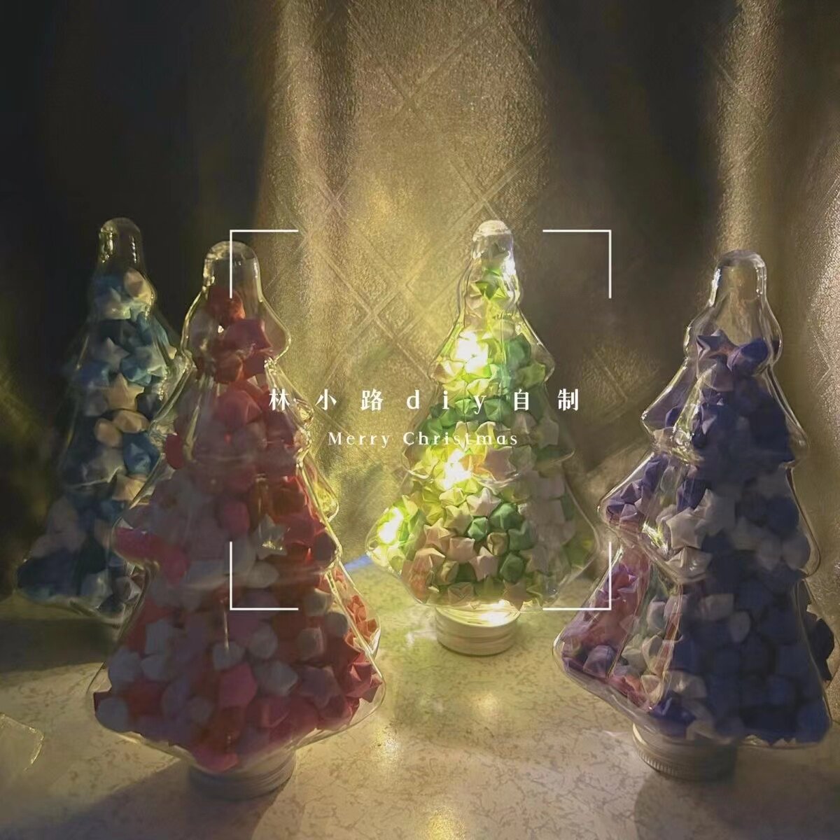 Маленькая красная книга в том же стиле, Рождественская елка, бутылка со звездой, звезда, оригами, градиентный цвет, звезда желаний, банка со звездой, высокий внешний вид