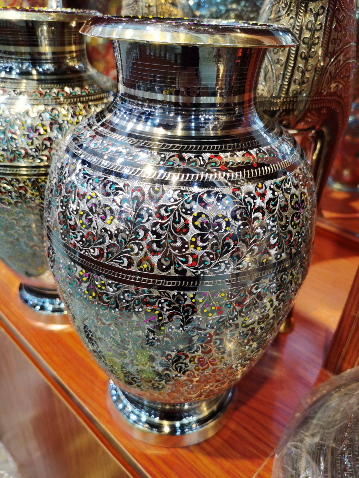 Пакистанское изделия из производственного процесса, вырезавших медные изделия, можно разделить на пятнадцать мастерских из производственного процесса, тысячи разновидностей. Каждое изделия из ручной работы составляет около 60%в соответствии с необходимостью резьбы и около 40%других содержания металлического сплава. Для семи основных шагов: 1 . Плесень превращает песок 2. Сварка деталей 3. Практикуйте обрезку 4. Политка 5. Разделение скульптур 6. Резьба по обработке цветов 7. Брызги и краска.Метод резьбы: резьба с боковым ножом, стоящий нож, плоский нож.
