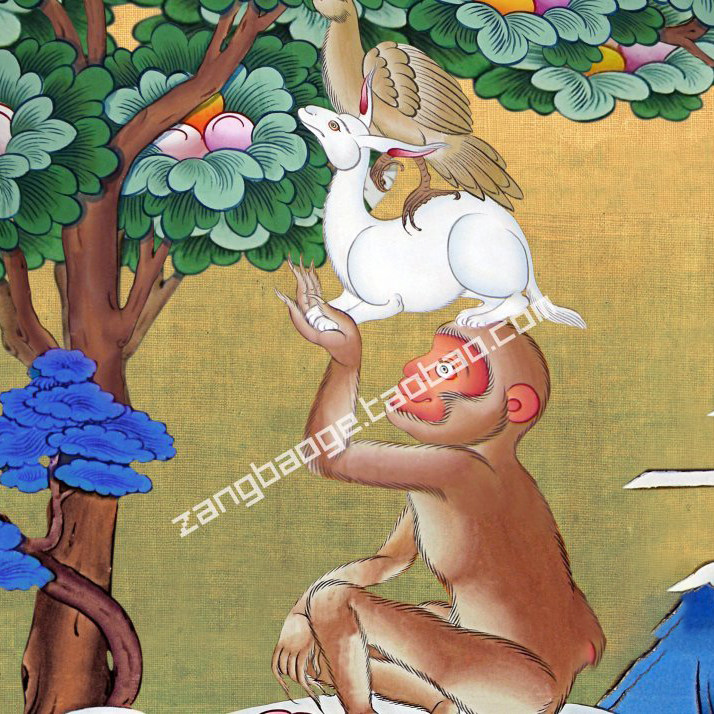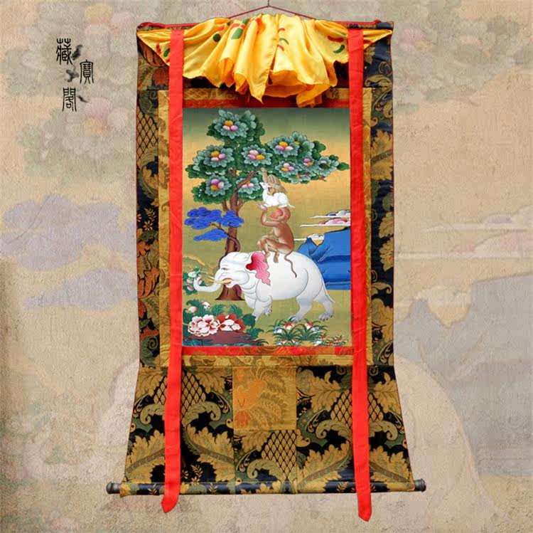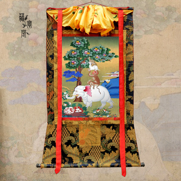 Непал Хлопковый минеральный пигмент Будда статуя тибетская благоприятная четыре руи -танка, висящие декоративные картины ручной работы могут быть описаны