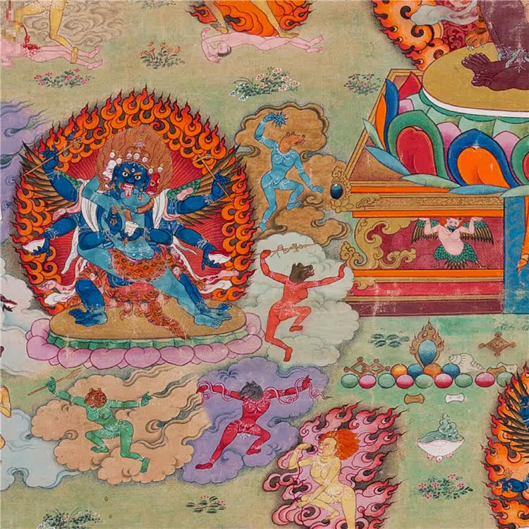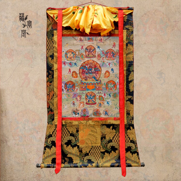 Павильон сокровищ, Yinwenwu Thangka Минеральный пигмент пигмент Микро -сплайский гостиная декоративная живопись, висящая тибетская ручная монтаж