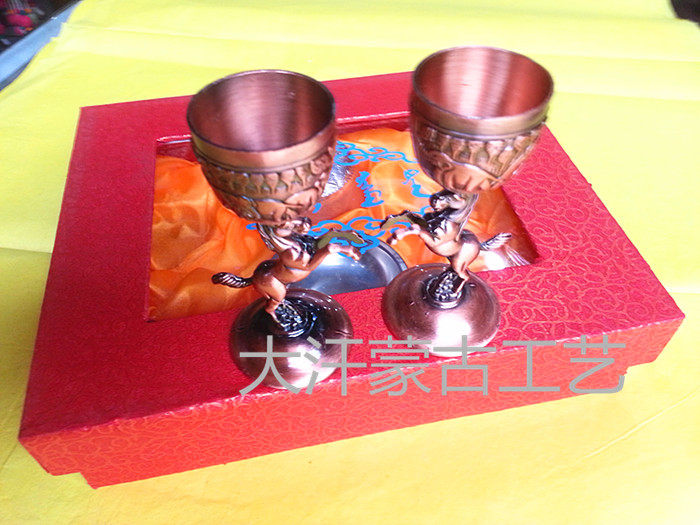 Винный стеклянный винный подарочный комплект серебряная чаша для винной подарочную коробку Внутреннее Монголия Этническое искусство бокал с бесплатной доставкой оптом