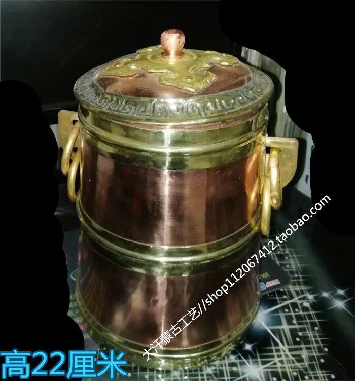 Чистая медная ручная диаметр 22 см, диаметр верхнего рта 12,5 см и 15,5 см в диаметре нижнего рта