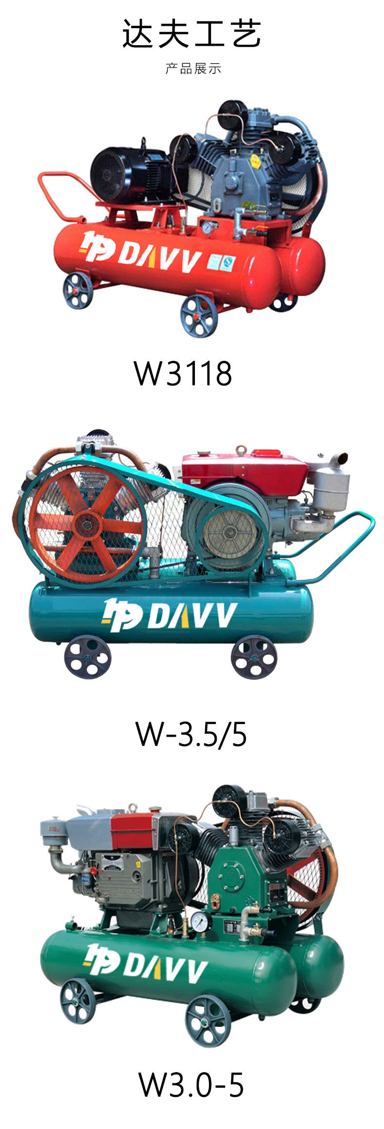 - W3118 поршневой воздушный компрессор (без электричества)