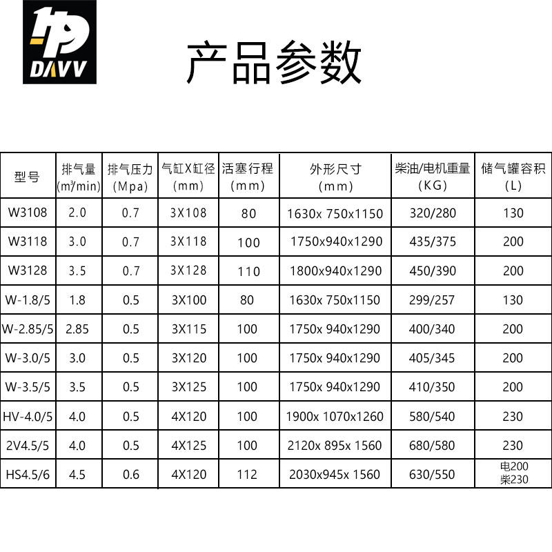 DAVV Mining Engineering Industrial -Адрейт поршневой воздушный компрессор надувный насос дизельный/электрический воздушный компрессор