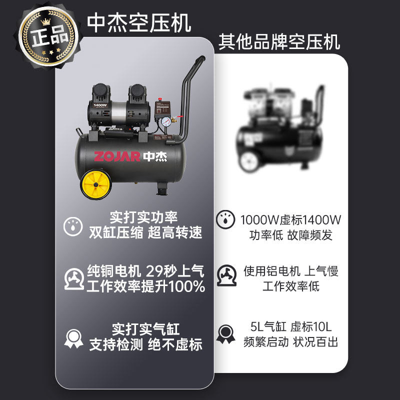 Air Compressor Zhongjie Small High -Dravure Industrial -Degrade Масло безмолвное 220 В Дерево -растяжение